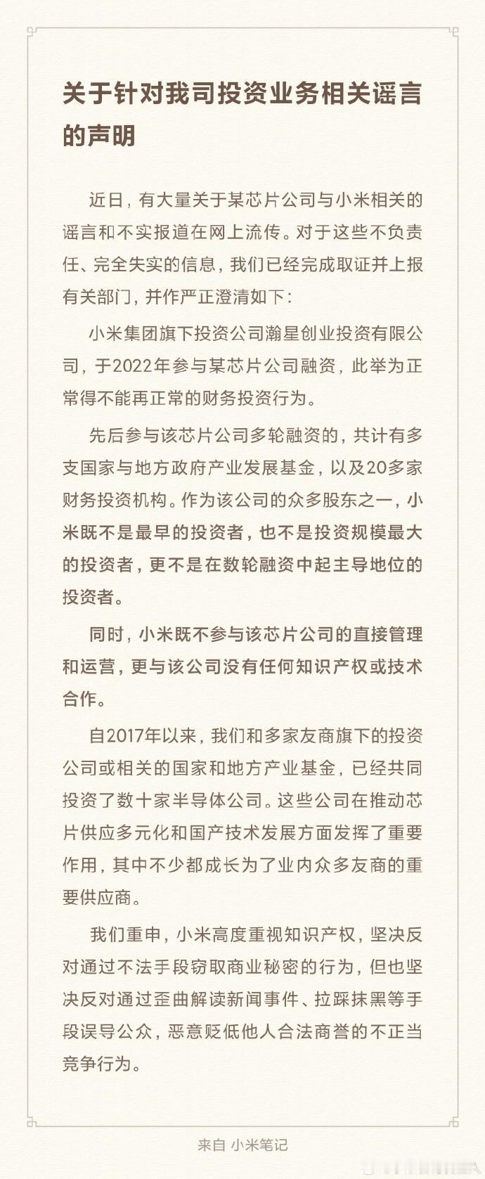 盘点小米汽车被造谣信息: 1、媒体恶意泄露小米SU7外观及相关谣言; 2、尊湃通讯侵权事件; 3、小米超级电机自研争议; 4、财经社区有关小米汽车产业链的内容; 5、小米超级大压铸质疑,海天辟谣。 随着小米汽车技术发布会后,小米汽车的热度持续攀升,就是发布会当天微博就出现了有关的15条热搜,咱就说哪个科技公司造车有如此大的排面。或许正是小米汽车的热度太高,才会引出后面这么无聊人开始肆意造谣,扭曲事实解读。 本来雷军只想踏踏实实的制造出让消费者性能上满意,价格上接受的C级高端汽车,但是偏偏有人就不愿意了,从最开始的小米SU7外观泄露,被炒作成小米营销手段,是品牌方故意为之,再到芯片专利侵权、电机自研争议以及大压铸质疑,雷军为了小米汽车已经投资100多亿,3400名工程师,如此大的投入获得如此多专利和技术不是水到渠成的事情吗?这样正要说瞎话真的好吗? 另外,我相信随着未来小米汽车的量产和发布,这些谣言自然也会不攻自破,毕竟小米移动智能空间的理念,或许引领汽车行业的再次革命,大家说是不是?