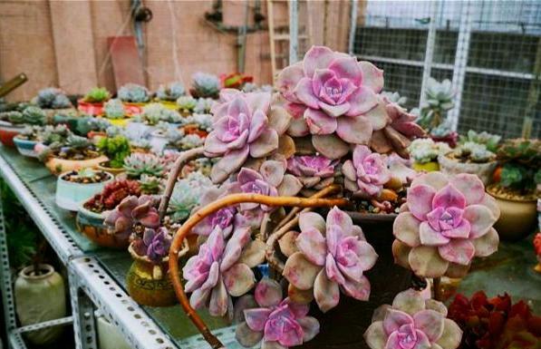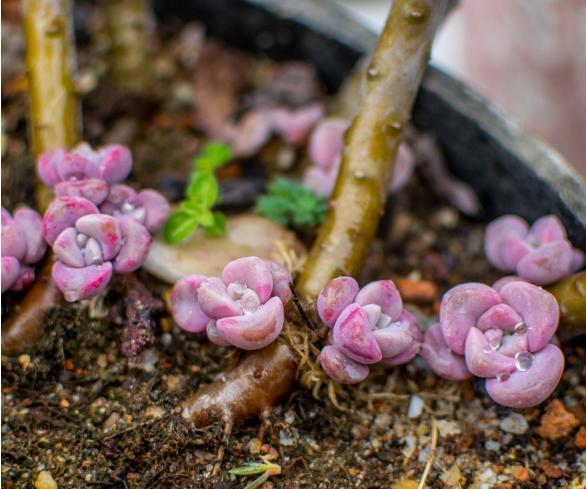 多肉紫乐又叫紫珍珠,是景天科风车草属的植物,可以采用叶插或是看透的方法来繁殖,性喜阳光长得快,紫乐最吸引人的有3点: 1、大小适中,叶片精致,它美丽的叶片组合起来就像是一朵一朵美丽的玫瑰花。 2、显色之后的紫,色泽是少见的粉紫色,娇媚又霸气,让很多花友一见倾心。 3、它生长快,可以通过掰出下面的叶片养成长长的杆子,光照充足,极易木质化,木质化的紫乐,容易出悬崖式的老桩,有意境有灵气。 4、繁容易扔土就生根,砍头后很容易爆小崽。 花友“我爱生活爱肉肉”说若是没有过养一盆紫乐,都不好意思说自己是一个多肉迷,您说呢?