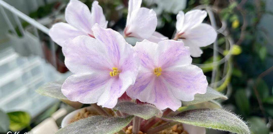 非洲堇缟花 花朵相对较大,粉粉嫩嫩的,好像很娇弱, 实际上生长强健,很快长大,很快开花,很快爆花, 让人很容易有成就感的花花