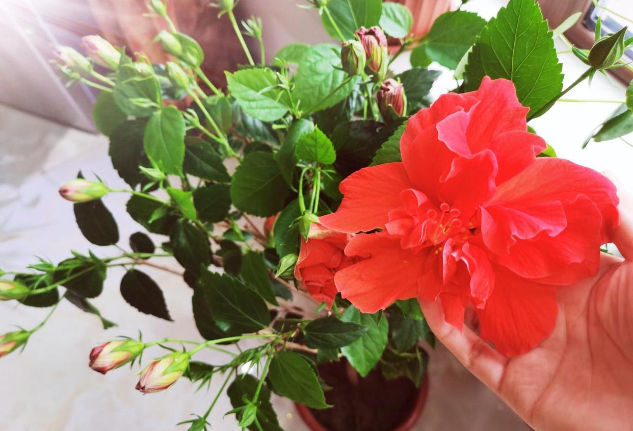 扶桑花,一种能四季开花的植物,只要肥水跟上,光照充足,就能不断的长花苞,开始我以为这么漂亮的花,不好养,没想到,它总是给我惊喜,花苞出不停,大花朵朵开,心里很美! 悄悄告诉你,很适合夏天养!