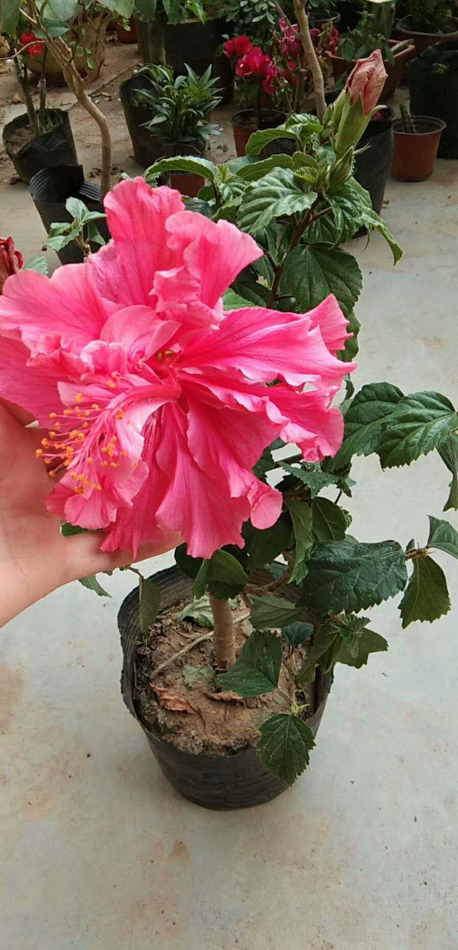 我们说一种植物开花性好不好,会说它是一季花、两季花或者四季开花。 但用这些词相容扶桑都显得苍白无力,扶桑养得好是可以每个星期都开花的,而且花朵硕大,颜色艳丽夺目。 大家不喜欢扶桑花,是因为它的名字谐音“服丧”,认为养在家里不吉利。 还有人认为这个名字与日本有关,因此也不喜欢它。 其实这都是好事者以讹传讹罢了。 扶桑花是一种原产于我国南方的古老花卉,“扶桑”作为植物的名称, 最早出现在《山海经·海外东经》:“汤谷上有扶桑,十日所浴,在黑齿北。” 在《山海经》中,扶桑被认为是吉祥的植物,“扶桑神木”。 因为开花多为红色,枝叶又似木槿,后世有人也称扶桑为“朱槿花”。 所以扶桑花自古就是吉祥的植物,说它不吉利只是人们的误解,与日本更是一毛钱的关系都没有。 随着现在育种技术的进步,扶桑花的颜色也不再仅限于红色, 黄色、紫色、粉色等各种颜色应有尽有,开花越来越勤,长势也越来越好。 因为名字的误会就放弃养它,真是花友们的一大损失。 扶桑花喜阳,最好每天能保持8小时以上的直射阳光,适宜温度在15~25度。 每年要对其进行翻盆换土。 春、 节每7~10天追加一次薄肥。 扶桑花对水分的需求量大,需长期保持土壤微湿。