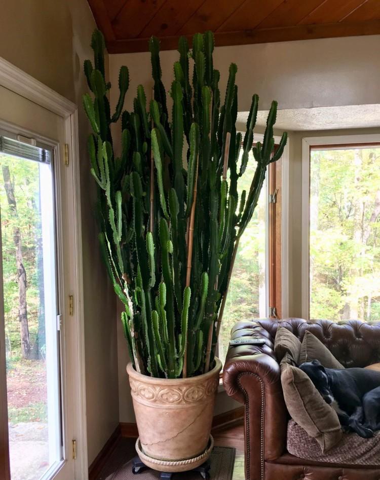 很多人都把龙骨误认为是仙人掌科的观赏花卉,其实不是的,它是大戟科的多浆植物,能长得十分高大,有些人会把它误认是霸王鞭。 其实是它和霸王鞭是两种完全不同的植物,它原则上来说就是一种多浆植物,只不过形如仙人掌罢了,养了好,也能开花。 下面是两盆已经生长10年左右的龙骨,大家可以看下,那么高的枝干,用的花盆却是小小的一个,这主要是因为龙骨的根系非常短,不发达,吸收能力弱。 平时控水干养,更利于它的生长,所以栽种要用稍小一些的花盆,用大盆易积水,反而不利于它的生长。 所以别看龙骨长得很高大,栽种也不能用大花盆,用一个稍小的花盆栽更利于它的生长,口径一般比较龙骨的株型大2-3圈,深度以能展开根系为好,土壤要用疏松透气,最好用腐叶沙质土壤。 栽种成活之后,放在温暖光照充足的地方,土壤四五成干浇一次水,一个月施一次复合肥就能满足生长,需要注意的是,龙骨盆栽的耐寒性不好,北方地区,当室内的温度15度左右,就要及时入室。 入室之后,放在门厅、客厅或是阳台,不但可观赏,还能很强的净化能力,且它有着“旺家镇宅”的美好寓意,十分吉祥,十分适合养室内。