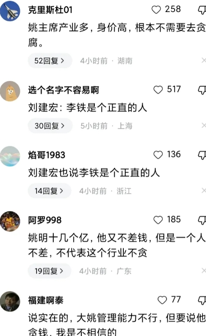 也有人相信姚明,说他产业多不差钱,根本不需要贪。他只是管理能力不行,要说他贪钱我不信。