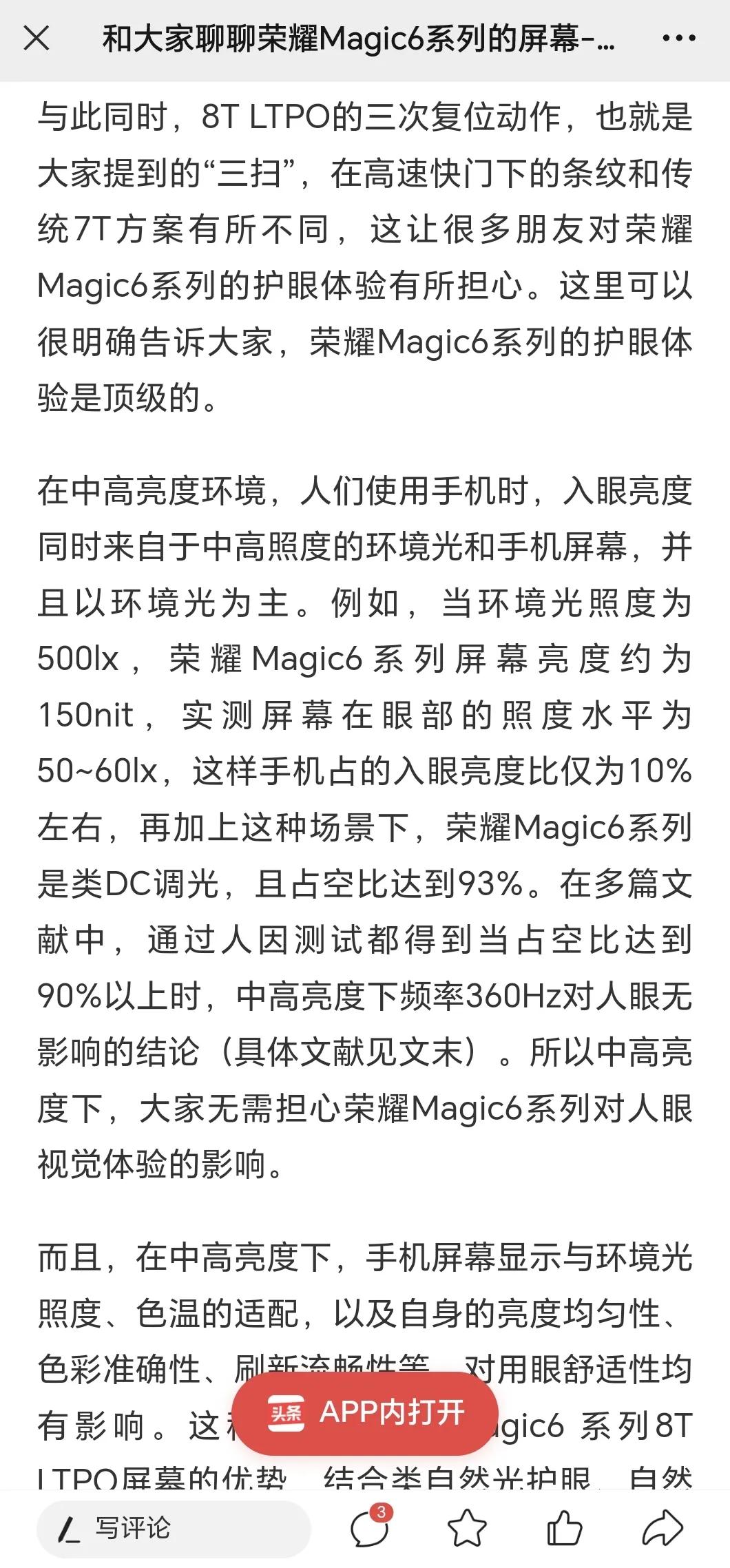 荣耀产品经理终于下场科普了!荣耀Magic6系列的护眼技术有目共睹,但有人还是不