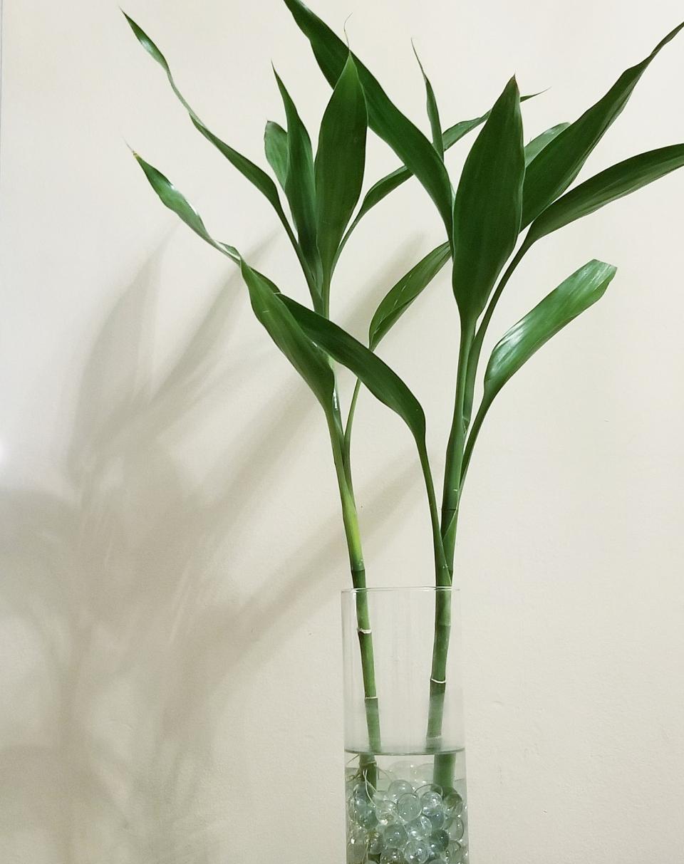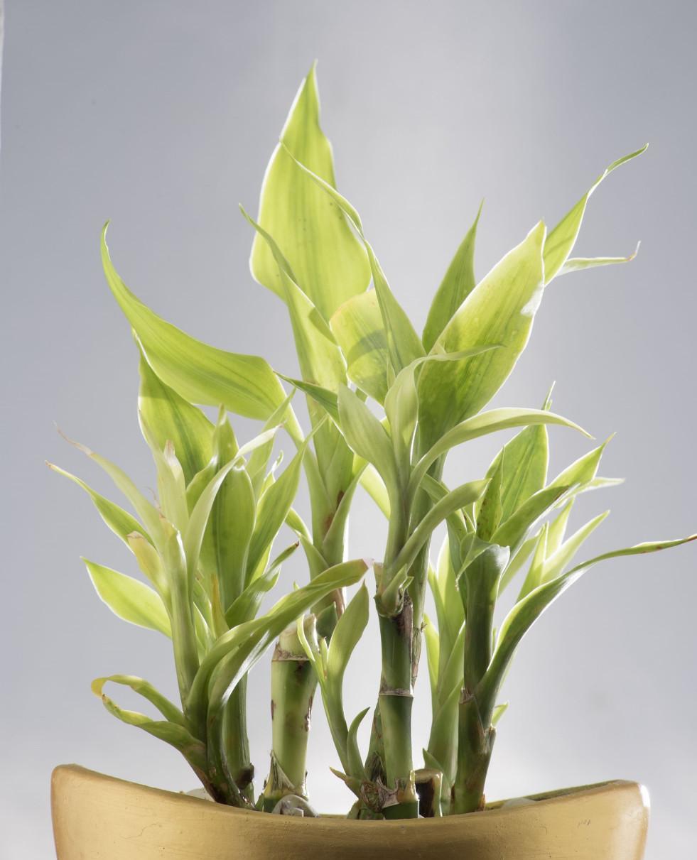 富贵竹——清新雅致,适合养室内 富贵竹是一种百合科类的多年生的绿植,无毒无异,对人体没有害,而且只要给它充足的水分,它在卧室也能长得很好。将它放在卧室能够改善环境、净化空气,而且观赏价值高,富贵竹的养花相对粗放,水养的富贵竹只要水分充足,会生长的很好。 将富贵竹放在卧室,双方都互不影响,装点居室,愉悦心情。富贵竹除了具有很高的观赏性之外,还是一种寓意吉祥的绿植,有着“大富大贵,竹报平安”的美好寓意,且株型小巧,清新雅致,不管是放在客厅、卧室还是书房都很合适,炎热的夏日看到它,会给一种清新舒爽的感觉。 需要注意的是富贵竹在白天吸收二氧化碳,释放氧气,可以提高室内的空气质量;同时富贵竹可以吸收废气,有消毒的功能,养在卧室里,也能改善空气的质量;而且富贵竹四季常绿,修长翠绿的叶片伸展开来,非常具有观赏性,养在卧室里也是一种不错的选择。从健康的角度来说,富贵竹和大多数绿植一样,在夜间吸收氧气,释放二氧化碳,会形成和人“夺氧”的一种局面,一般卧室面积不大,晚上门窗紧闭,因此在卧室里养富贵竹不要太多,否则会影响人的睡眠质量;从富贵竹的生长环境来说,富贵竹喜散光、通风的环境,不喜电器辐射,所以我们在卧室里养富贵竹是不能把它养在阳光直射的位置,也不能放在没有光照的位置,更不能放在空调吹风口或者靠近家用电器的位置,否则对它的生长非常不利。
