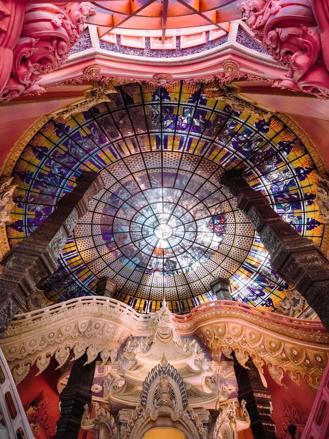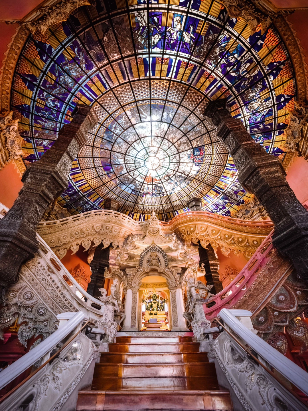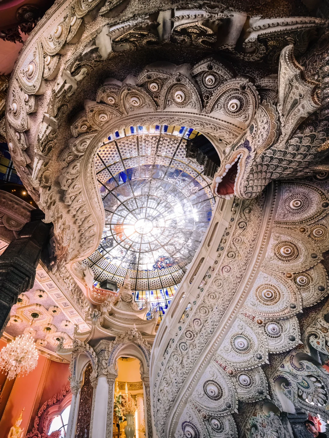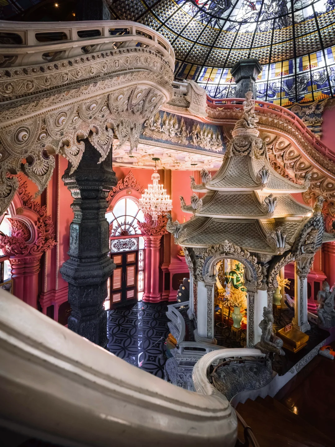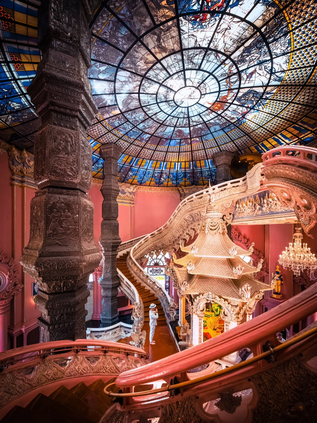 我是几奈,坐标上海的90后摄影博主 来泰国旅行感受最深的是 这里魔幻建筑和神奇的文化 历经千年岁月的沉淀 神话故事便融入文化和建筑里 这座神奇的悬空博物馆便是其中之一 · 博物馆内部由两个巨大的旋转楼梯对称缠绕 分别为一条白龙和一条粉龙🐉 上面的雕刻如同鬼斧神工 如同悬空一般的造型特别魔幻 穹顶超大的圆形玻璃图腾 珐琅图案代表着太阳神和地球五大洲🌏 · 再往上通过一个幽暗的旋转楼梯 便进入了博物馆顶部的神像体内 里面的空间如同天空之境☁️ 蓝天白云色调为主的祭拜礼堂 · 📸打卡机位: 1️⃣人站在旋梯交会的中间位置 超广角从高处俯拍,左右角度都很好看 从门口向上俯拍,利用超广角拍摄大场景 2️⃣人站在旋梯的中间楼梯上 用中长焦从二楼向下拍摄特写 3️⃣人站在二楼位置 用中长焦从旋梯拍摄到好看的穹顶 · 🕍三头神像博物馆 💰门票:现场400泰铢 🕤时间: 9:00-18:00 📍地址:99/9 Moo 1, Bang Muang Mai, Samut Prakan · ‼️注意事项: 1️⃣进馆需要脱鞋 2️⃣着装不能露肩 3️⃣短裤短裙膝盖以下 · 🐘文化背景 三象神在泰国民间故事中是天神坐骑 任何妖魔鬼怪遇到都会被其降伏 三头象神博物馆于1994年开始建造 由当地的数十名手工艺美术师手工打造 在修建期间传闻曾有多次的神迹发生 因此当地居民把这里供奉为圣地 ·