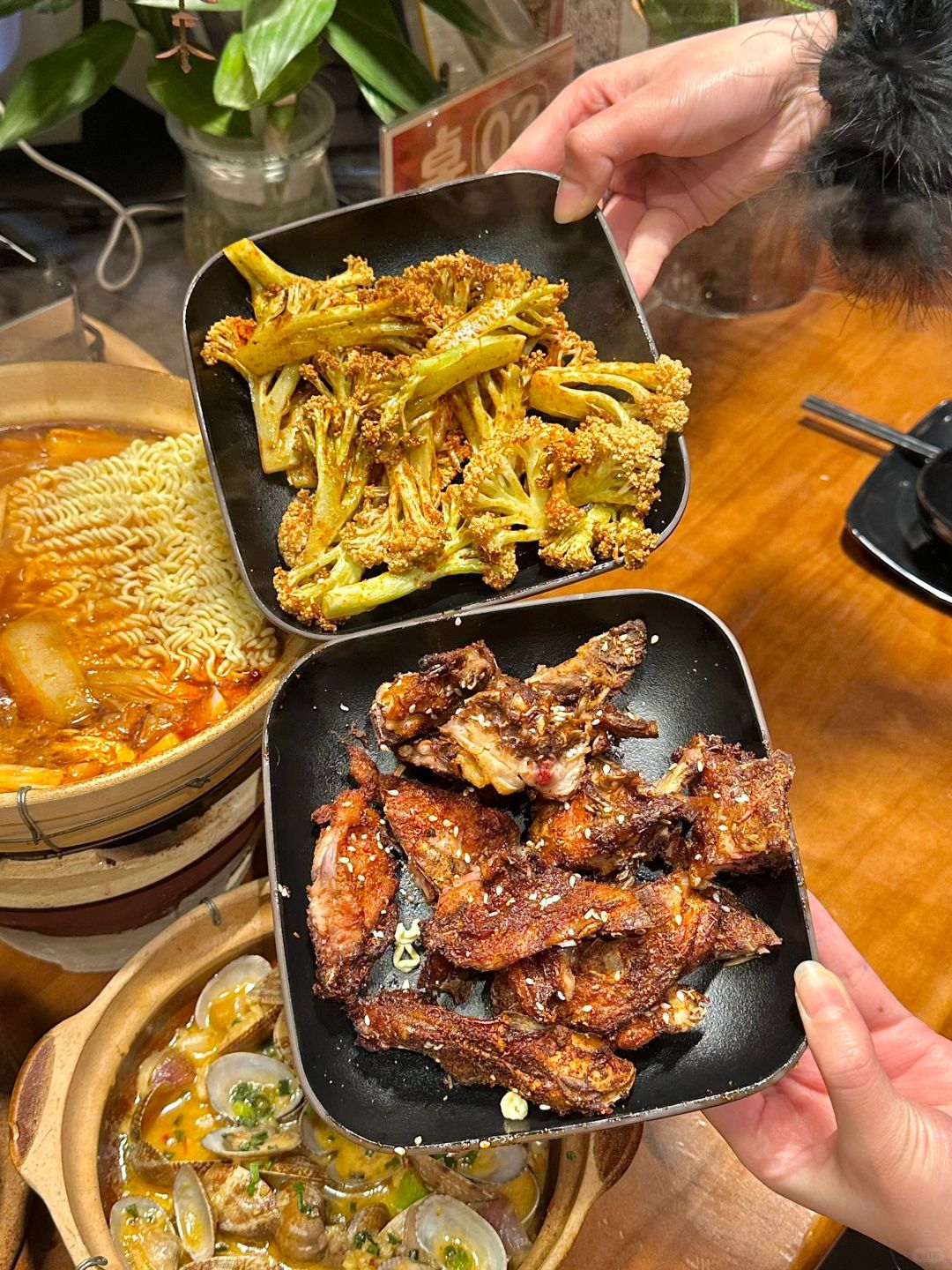 没想到双井坊里藏着这么一家好吃的砂锅 烧烤🌟温馨又接地气 烟火气十足的小店~ ✅番茄🍅牛腩煲 谁能拒绝软烂的番茄牛腩煲 搭配泡面的吃法~番茄味好浓郁 牛炖的软烂 咸香咸香的 后面还听到有小姐姐还专门为了这口番茄煲来的👍 小烧烤 花菜🥦鸡架骨🦴茄子🍆 都烤的刚刚好 吼吼吃的 我还要再来2345次…