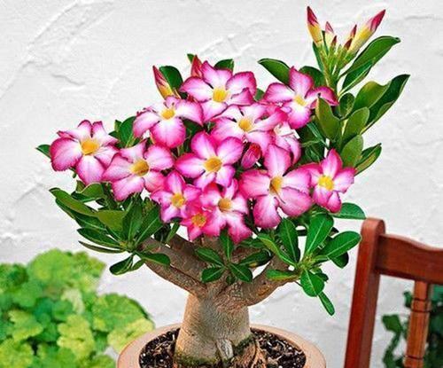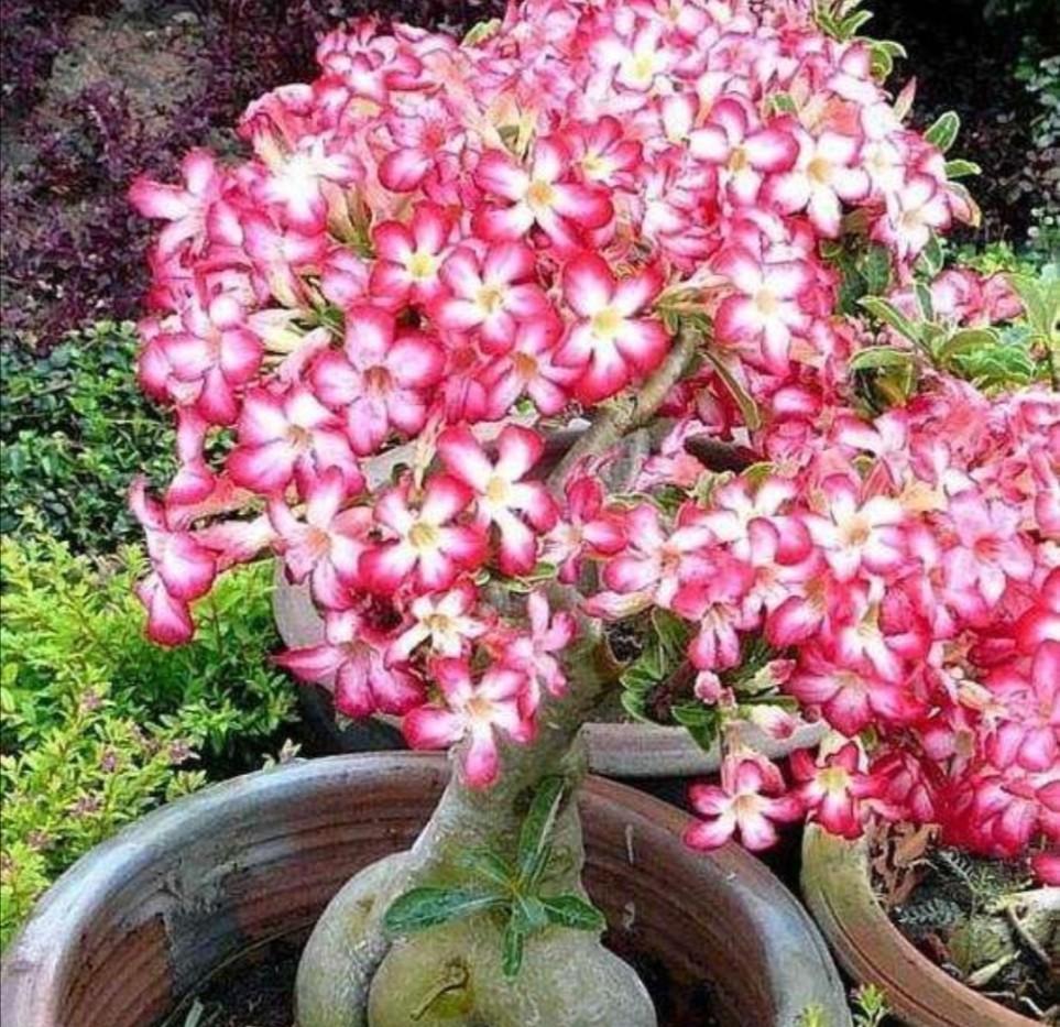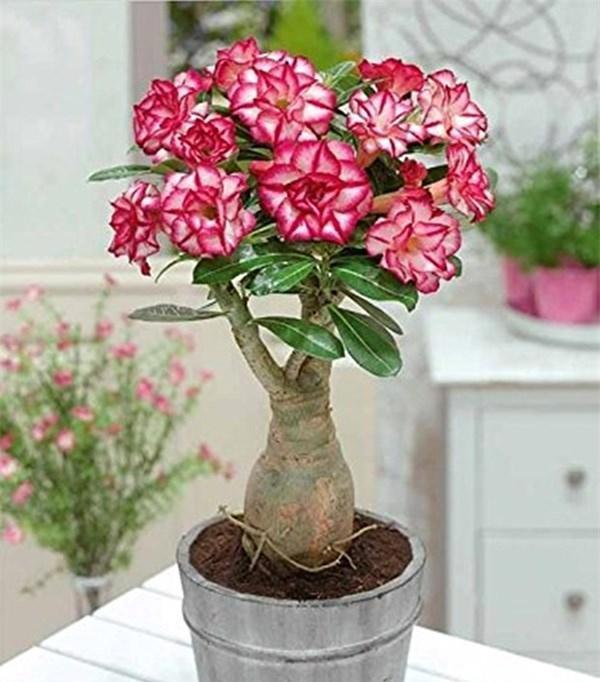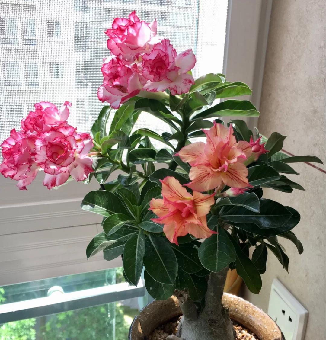 高档小盆景,亮如“玫瑰花”,看你喜欢吗! 沙漠玫瑰是一种很美丽的观赏植物,自带一个啤酒肚,看起来,就有一种“高级感”,特别适合打造成小盆景 原生的沙漠玫瑰像一棵棵大树一样, 不过我们现在在花市看到的沙漠玫瑰,都是人工培育出来的观赏品种 相对来说,株型“矮小”,花朵更大,颜色更丰富 重瓣的华贵,单瓣的清雅,每一种都有它独特的美,只有更美,没有最美,用来形容沙漠玫瑰一点也不夸张 沙漠玫瑰的花期很长,只要温度合适,四季皆可开花 自然环境下,春夏秋三季皆能大量开花 栽种的时候,建议不要用大花盆,花盆稍小一些,更利于后期的控水 因为沙漠玫瑰天生怕积水,水多易烂根,土壤干透浇透,有一个“良性”的干湿循环,更利于它的生长 平时多晒少管,薄肥勤施,花更多