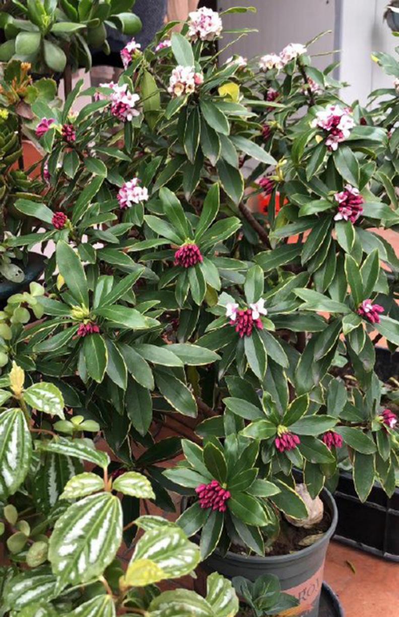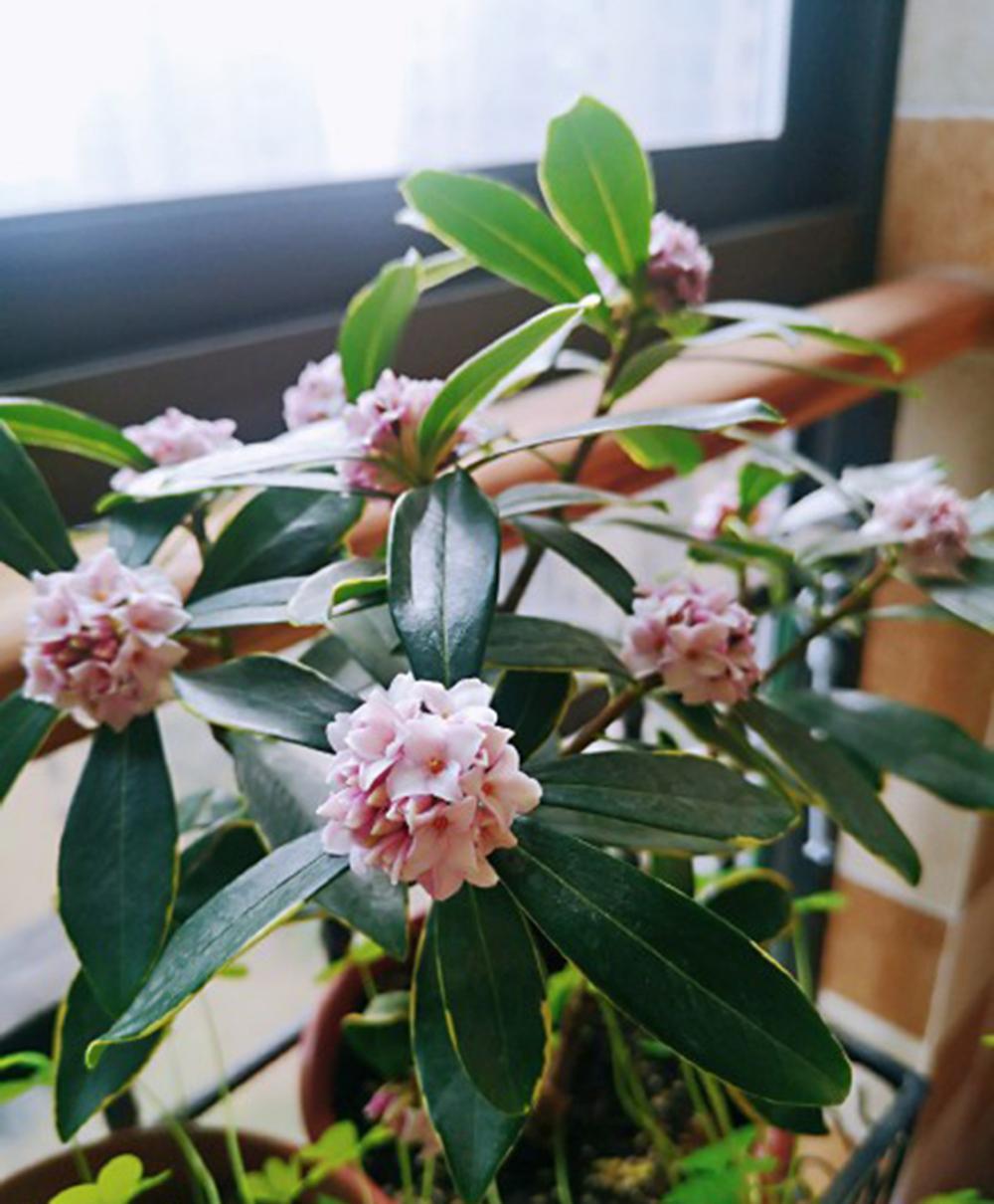 给大家推荐一种封闭阳台也能种的年宵花——瑞香,宋《清异录》载:“庐山瑞香花,始缘一比丘,昼寝磐石上,梦中闻花香酷烈,及觉求得之,因名睡香。四方奇之,谓为花中祥瑞,遂名瑞香。”瑞香是春节前后开花的一种植物!叶片边绿淡黄色如镶的金边,枝条粗壮,姿态有韵味,盛花期花朵红而鲜艳,而且散发着浓郁沁人的香味。每年瑞香开花的时候,就知道新年要到了。那一串串圆滚滚的花球盛开着,散发着浓郁迷人的香味,让寒冷萧瑟的冬季,也变得热闹起来,有了年味儿。