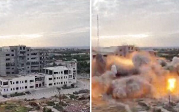 以色列国防军炸毁加沙一所大学大楼,一边挖坟掘墓,一边炸毁学校,这就是以色列口中的