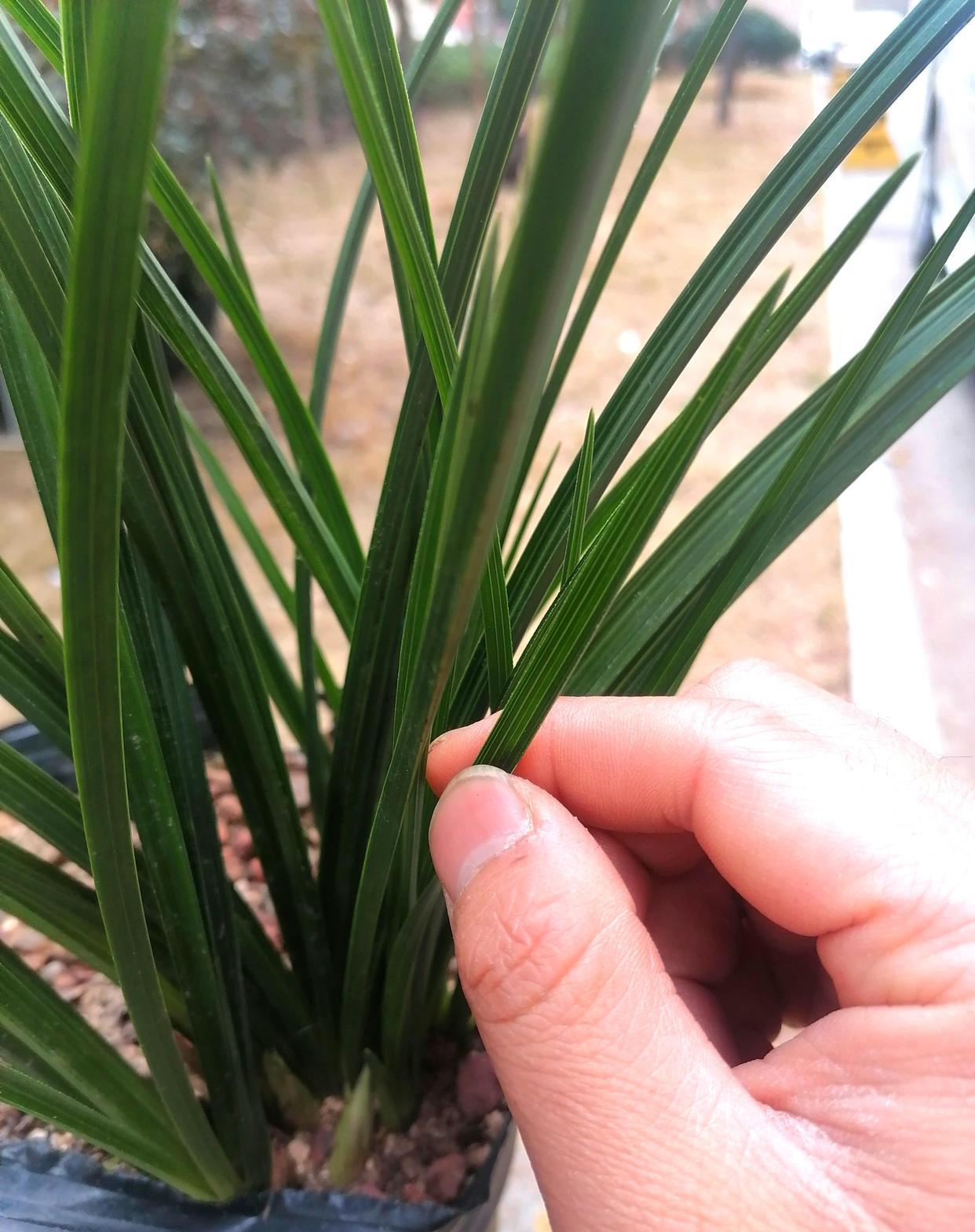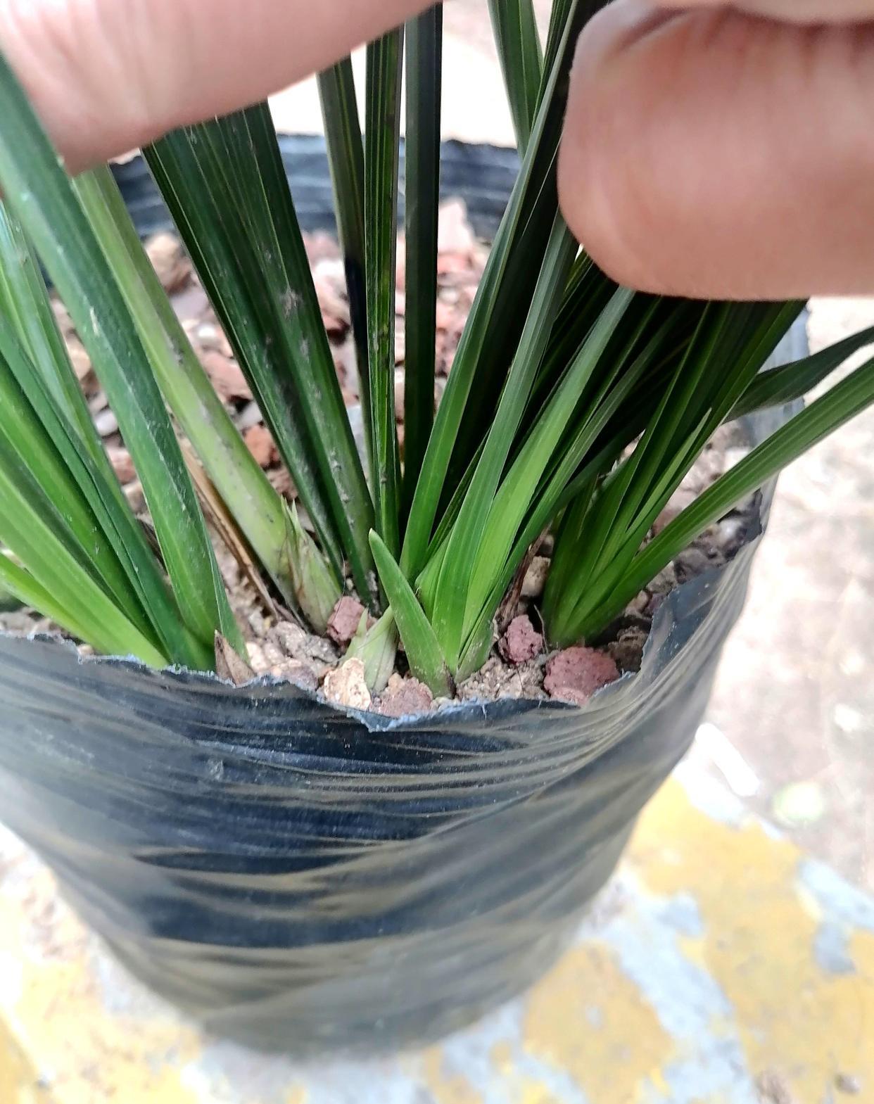 给大家欣赏一颗不一样的蕙兰,两花苞,叶片又硬又挺,叶色深绿,也就是有些人所说的木纹草,这叶型和叶质是真好,新苗是越看越漂亮。