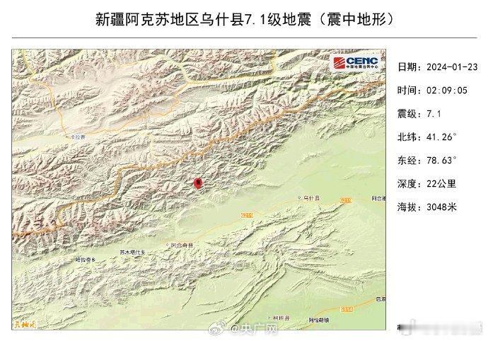 #新疆乌什震中20公里内人口极其稀少#震中5公里范围内平均海拔约3048米,震中