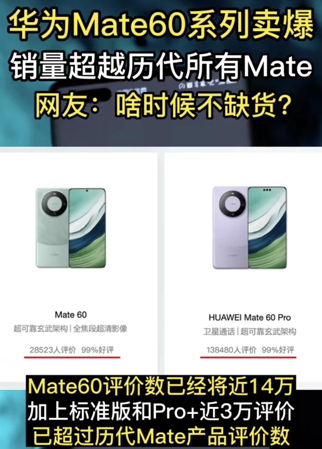 华为这也太猛了!华为Mate60系列回归即巅峰,4个月销量就破了众多前辈的记录,