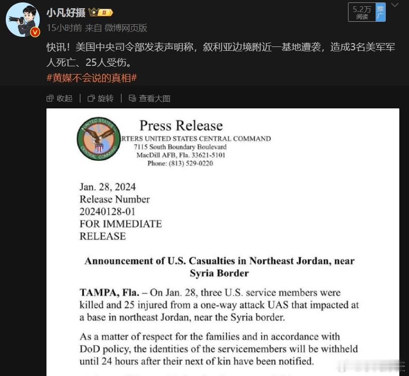 美军被干掉3人后,以色列的张叫兽有话说。