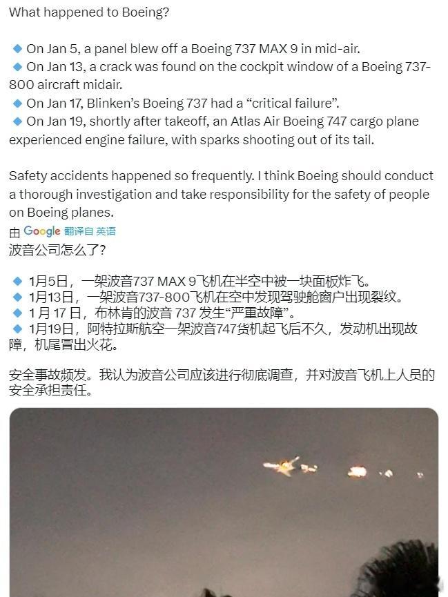 近日,波音发生多起意外,甚至连布林肯的专机也发生“严重故障”。