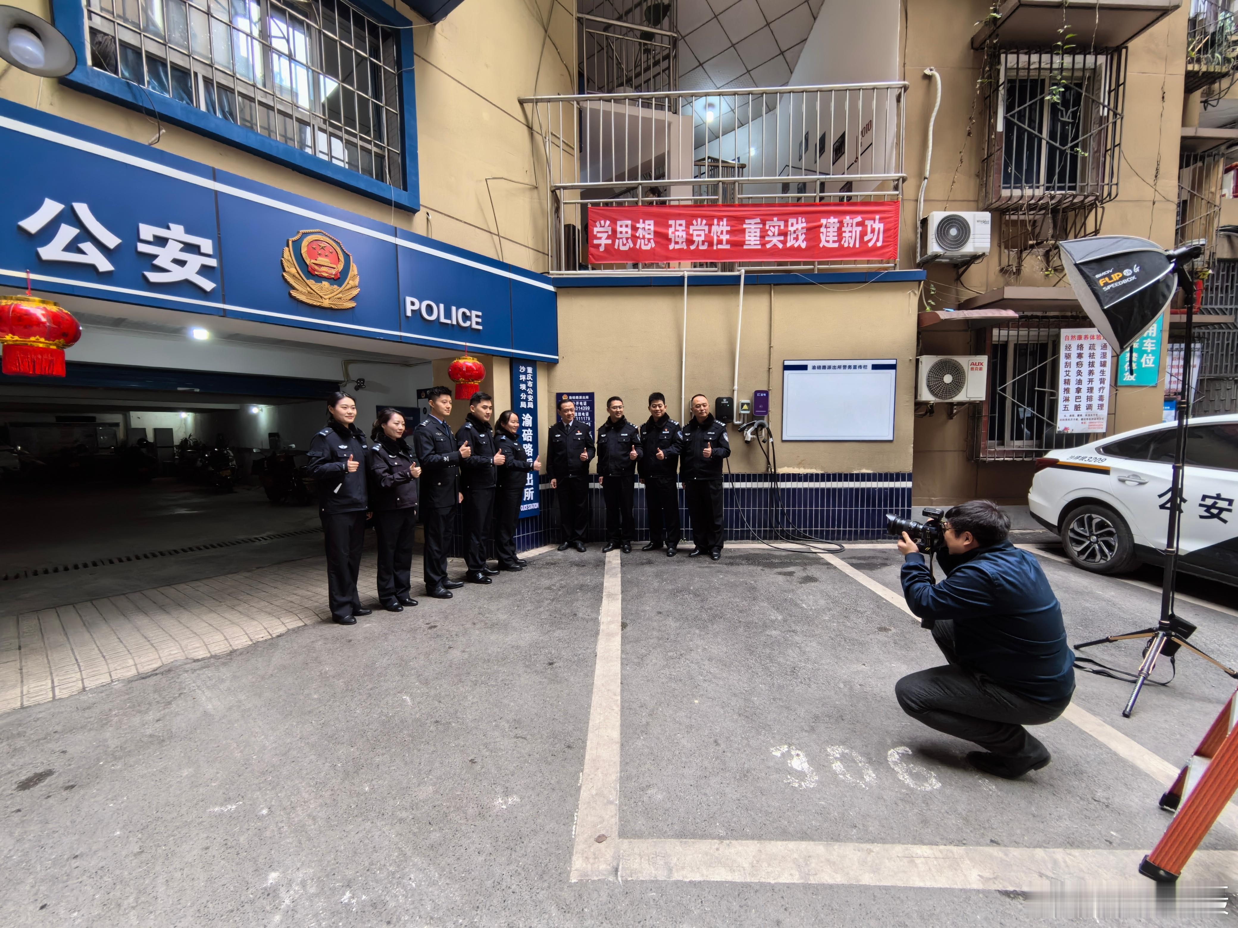 2013年入驻重庆沙区渝碚路派出所随警采访,虽因工作调动离开多年,但每一年过年都回去给大家拍合影。