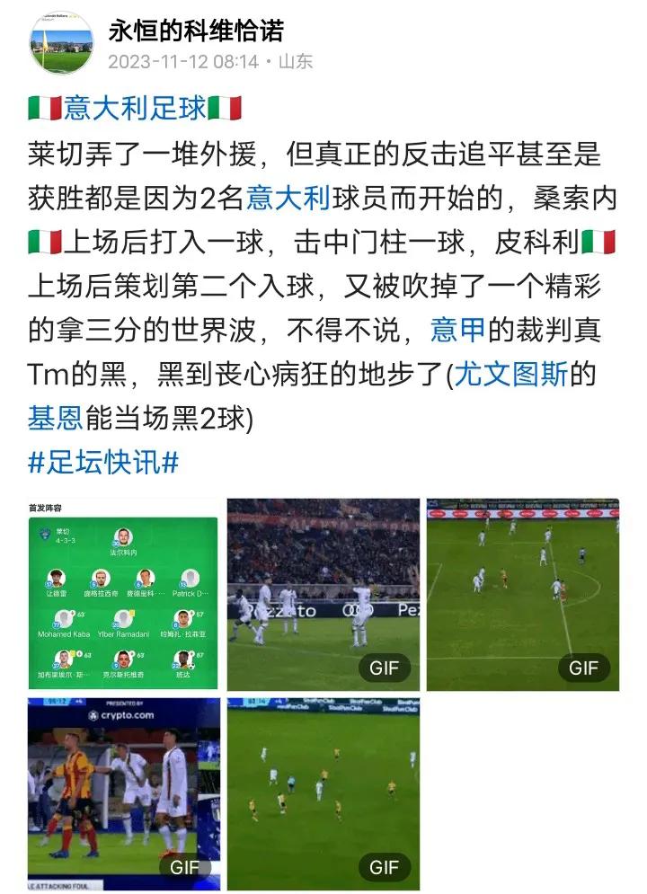 🇮🇹意大利足球🇮🇹 皮科利本赛季最少三次挽救莱切队输球了 主力外援比他多