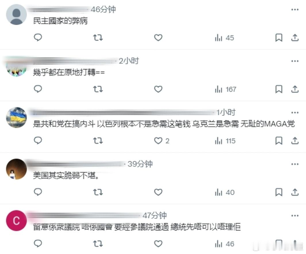民主党控制的参议院不满这项条文,预计推出综合法案,既援助以色列,又对乌克兰提供新的军援。参议院也希望法案包括对台独蛙军的援助。