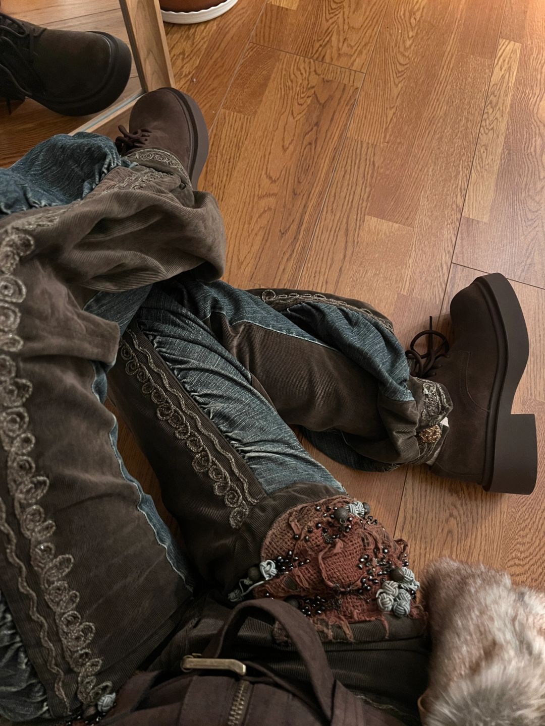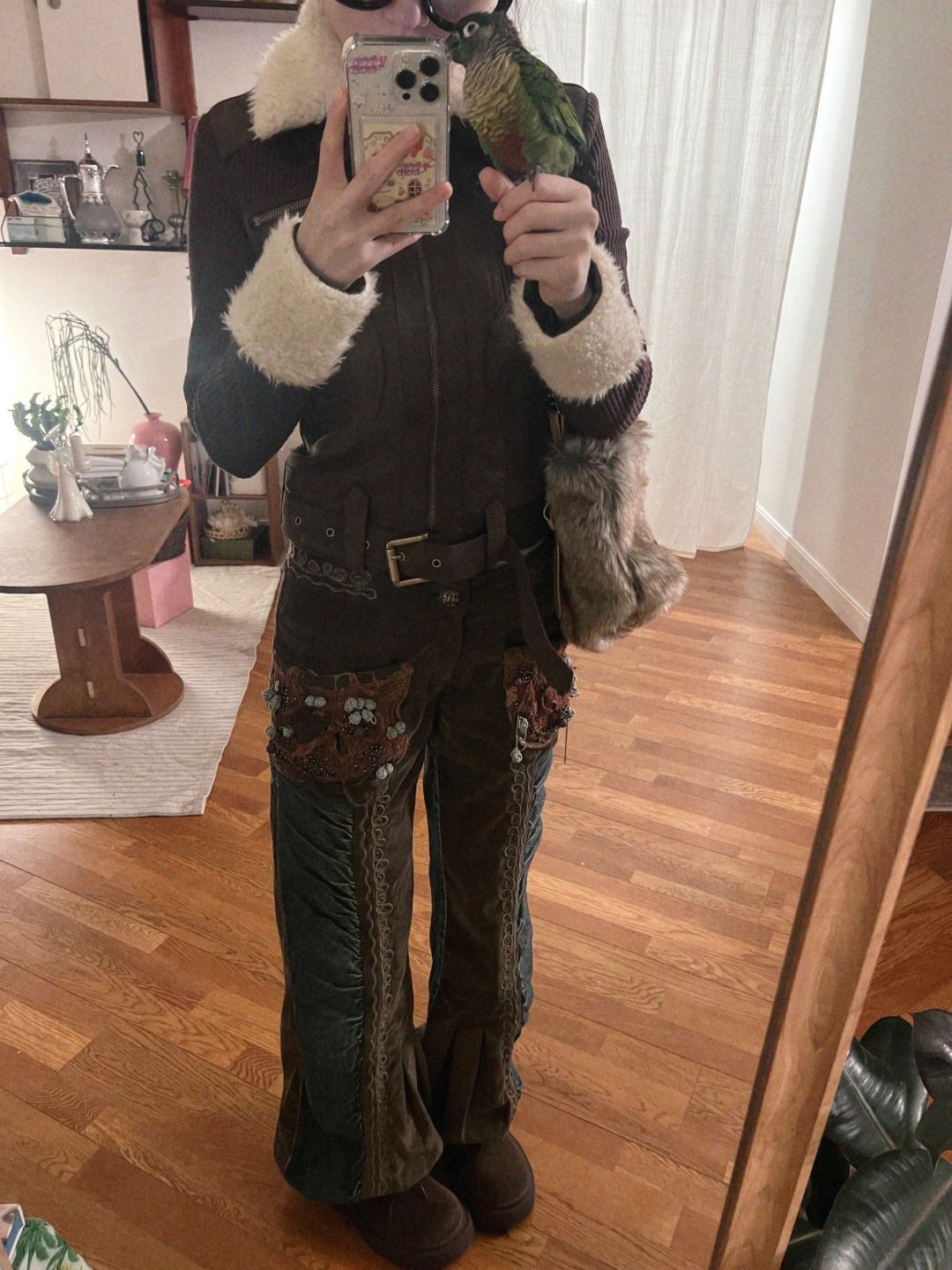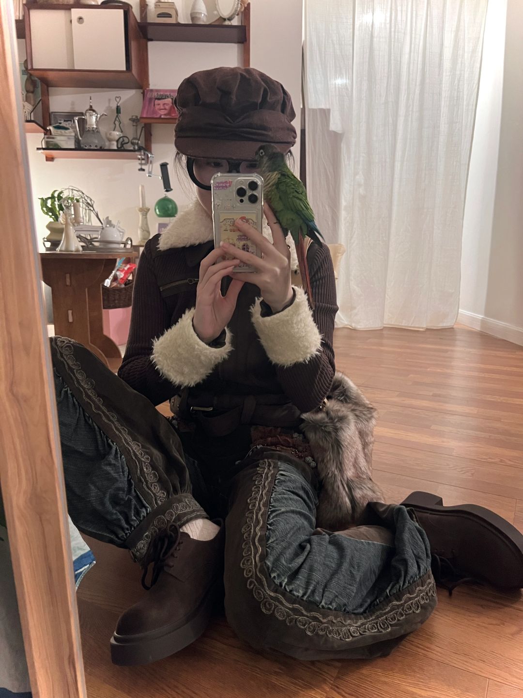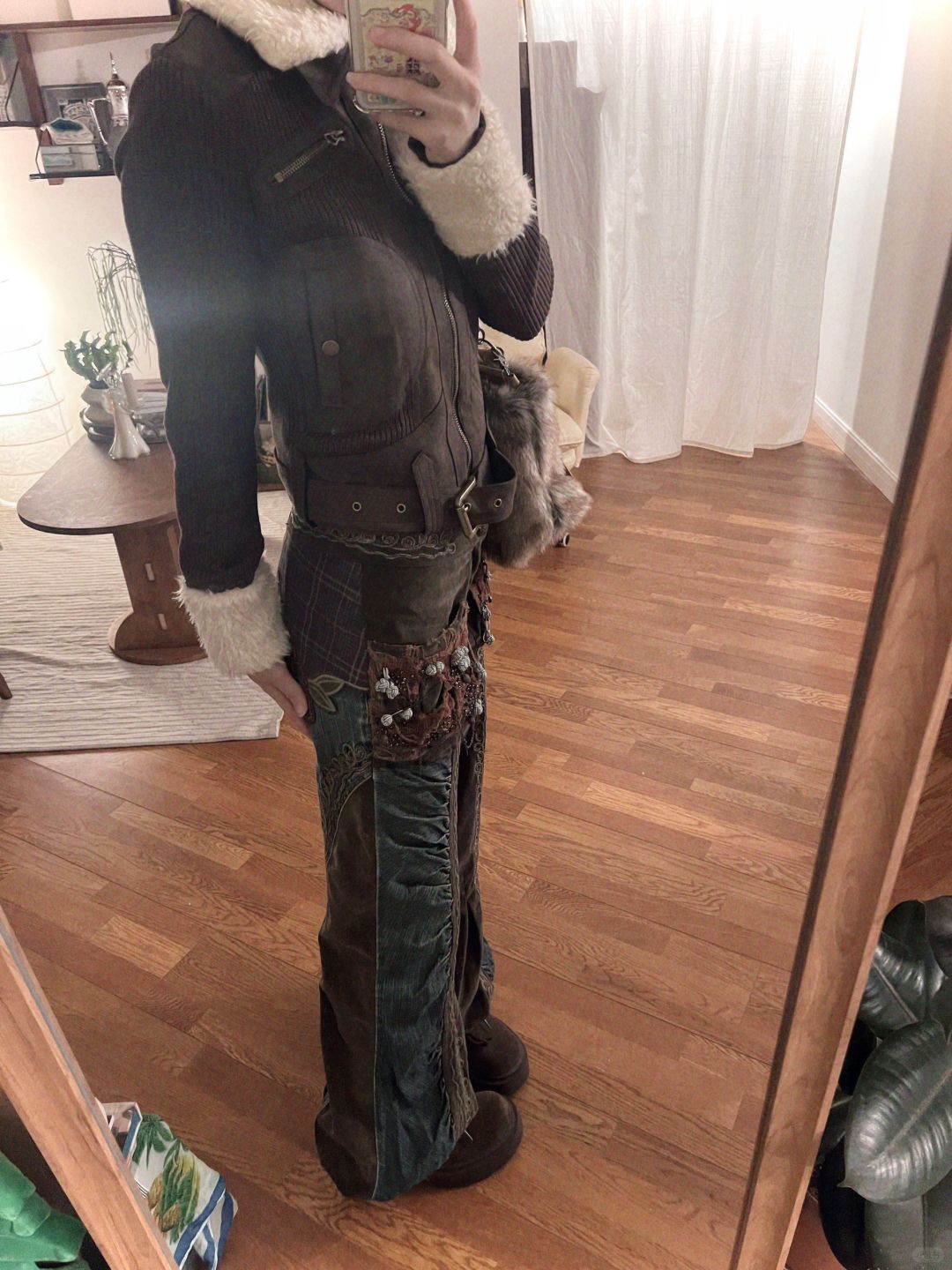 第一套的喇叭灯笼裤真的是仙品,面料的拼接碰撞,复杂的版型,牛仔部分手工的抽褶,给它赋予了不能被定义的风格。