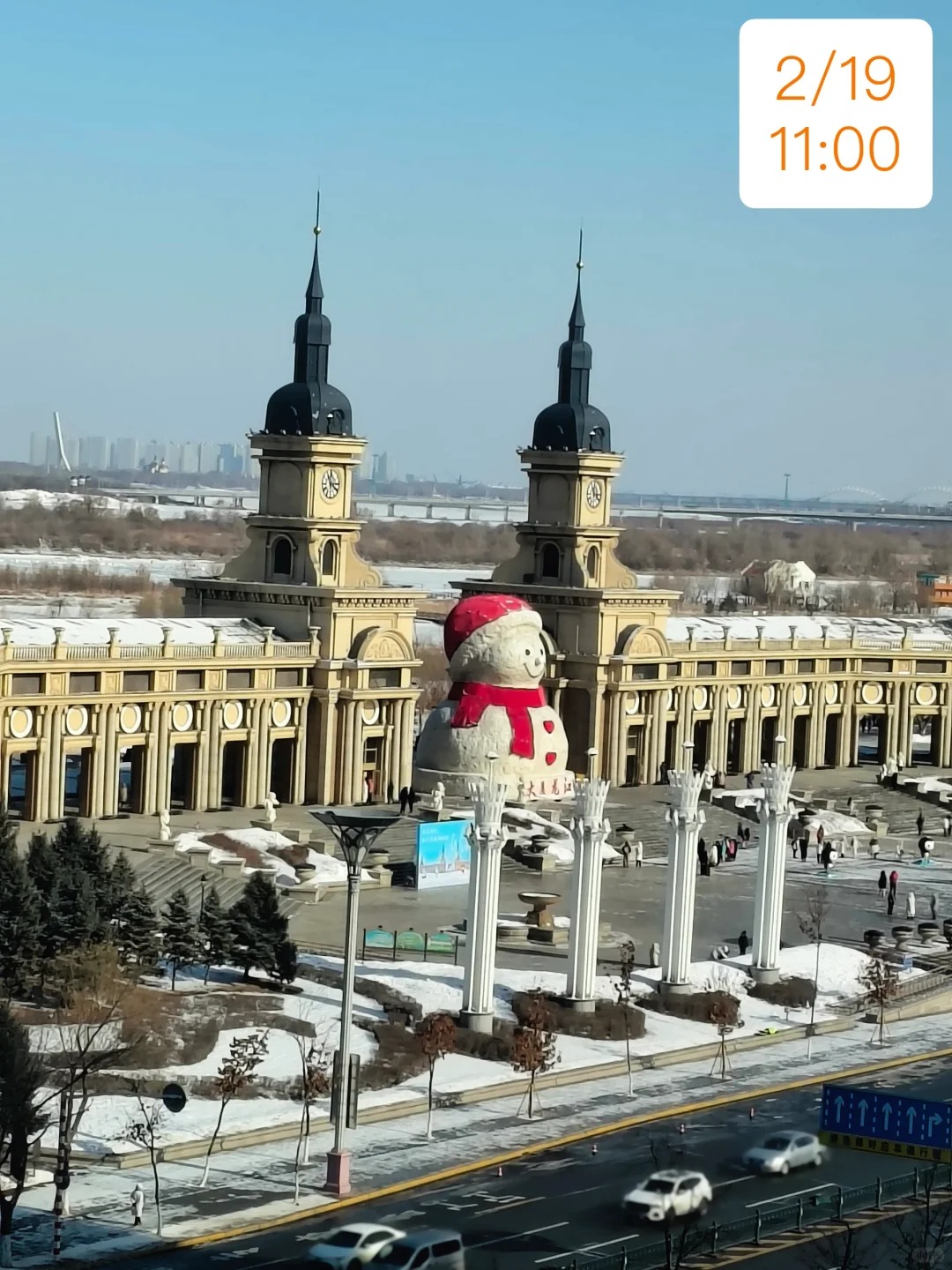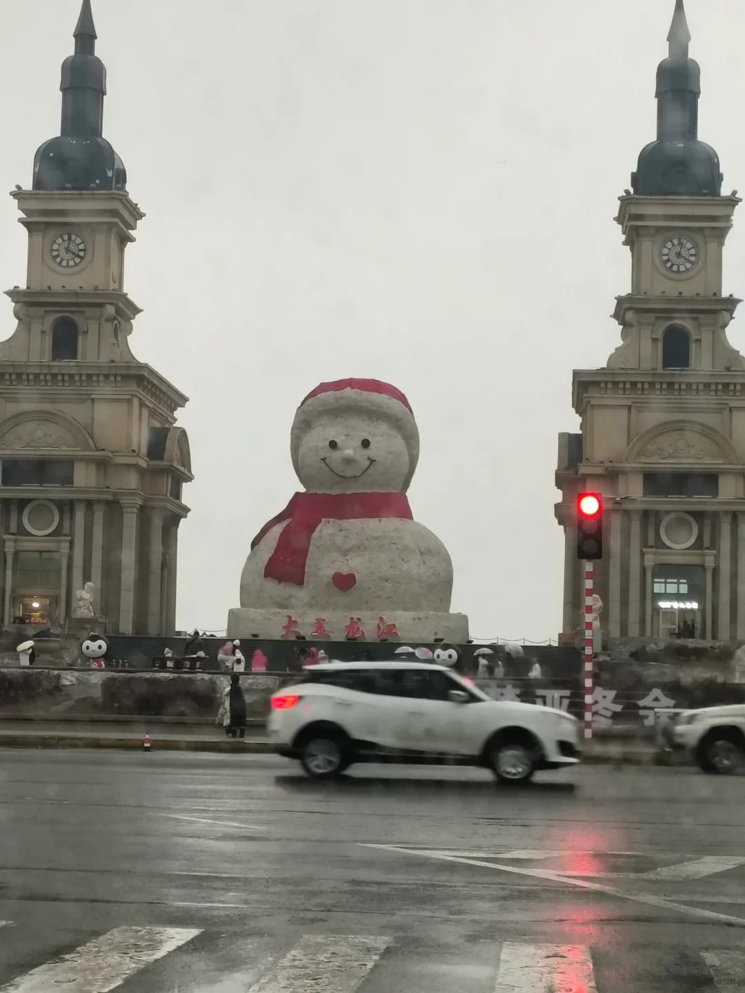谁能想到,一天之内颜值差这么大 昨天中午升温下雨,大雪人化了不少,脸蛋黑黑的,不忍直视。 昨晚上下了一场雪,上午工作人员又美化了一下,颜值恢复50%。 目前来看,还能挺个一周没问题呢!