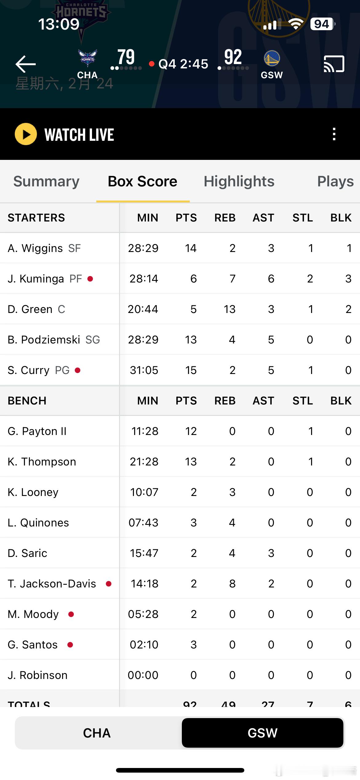 背靠背要拿下了[二哈][二哈]#金州勇士[超话]##黄蜂vs勇士#