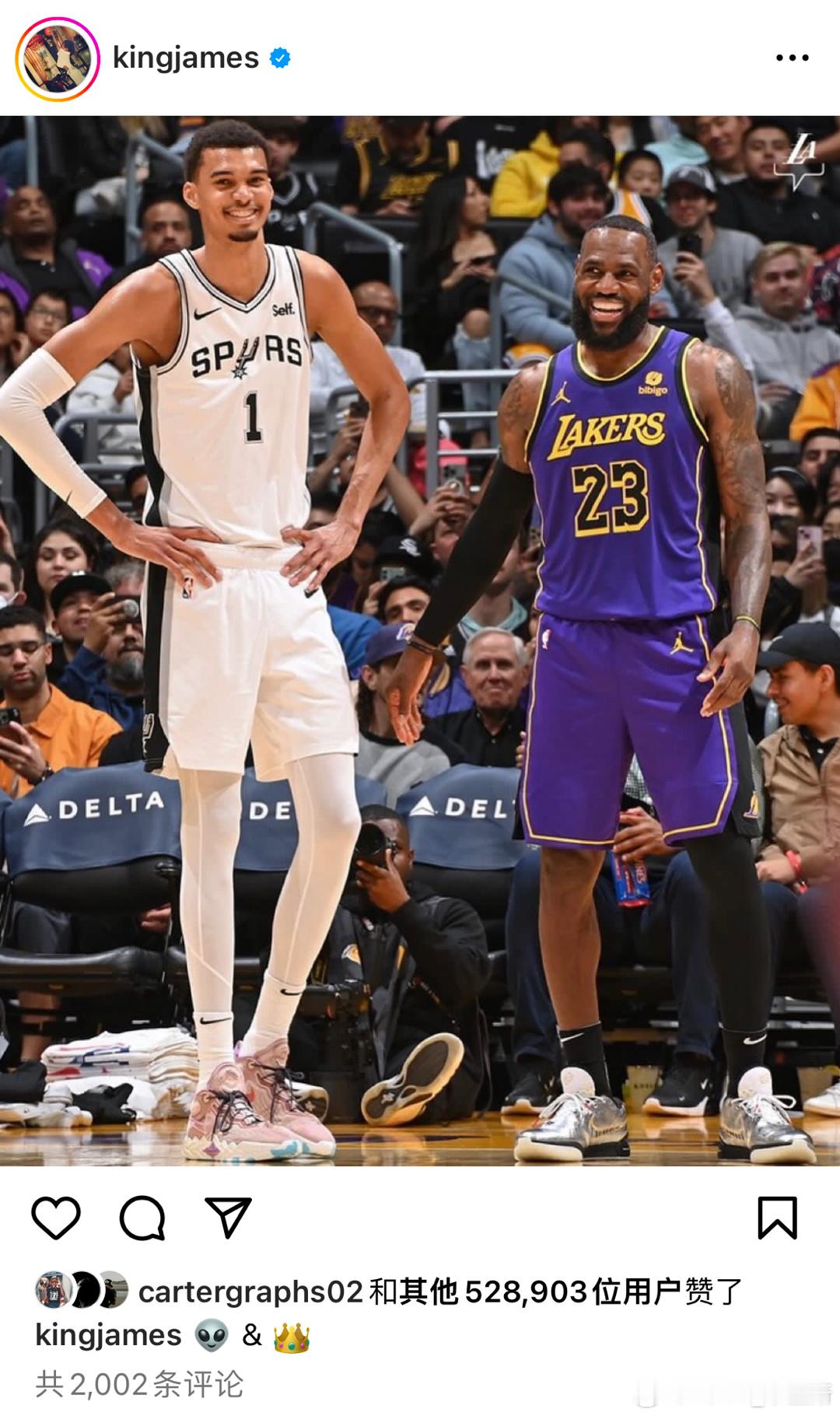詹姆斯发和文班亚马的合照:👽&👑#马刺vs湖人#