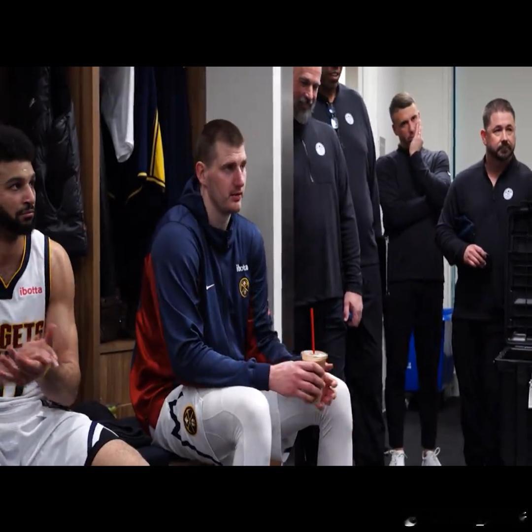 笑死[笑cry]掘金主教练在颁大金链子镜头突然给到在喝饮料的约胖子[笑cry][