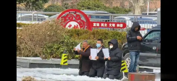巨额资金被骗, 疑犯就在身边, 公安推来推去, 检法两院不管。 材料铁证如山, 有司视而不见 三年举报未果, 仰天跪雪喊冤。 其实,真正应该下跪的不是他们。