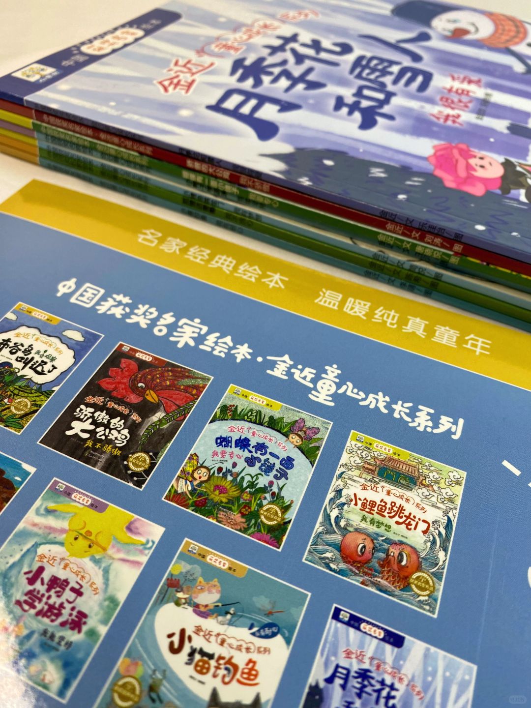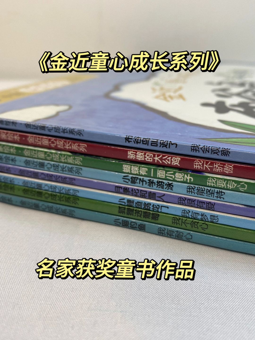 📚《金近童心成长系列》共8册,每一册都针对儿童的喜欢与科普知识创作,为孩子培养良好的学习能力。例如:《小鲤鱼跳龙门》通过小鲤鱼还教会小朋友拥有梦想;《小猫钓鱼》的故事培养小朋友的耐心;《小鸭子学游泳》的故事培养孩子坚持……