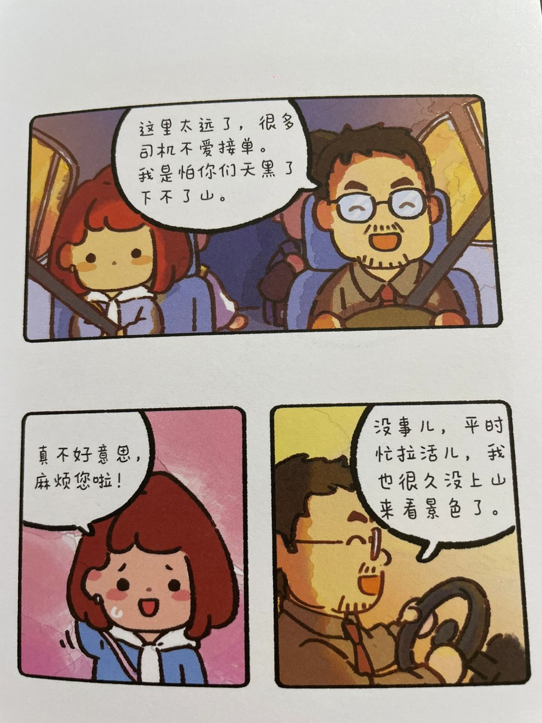👴做煎饼的苏伯、🧍♂️一起看风景的陌生大叔、🐱偶遇的流浪猫、还有好吃的鱼多多、有朋友、有家人..每一个温暖瞬间都被定格在漫画里,看完像被拥抱一样美好