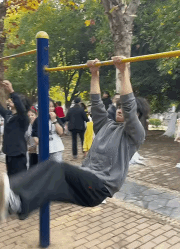 图一:怎么可能啊,女孩子的力气这么大的吗?引体向上轻松搞定。 图二:平衡能力太好