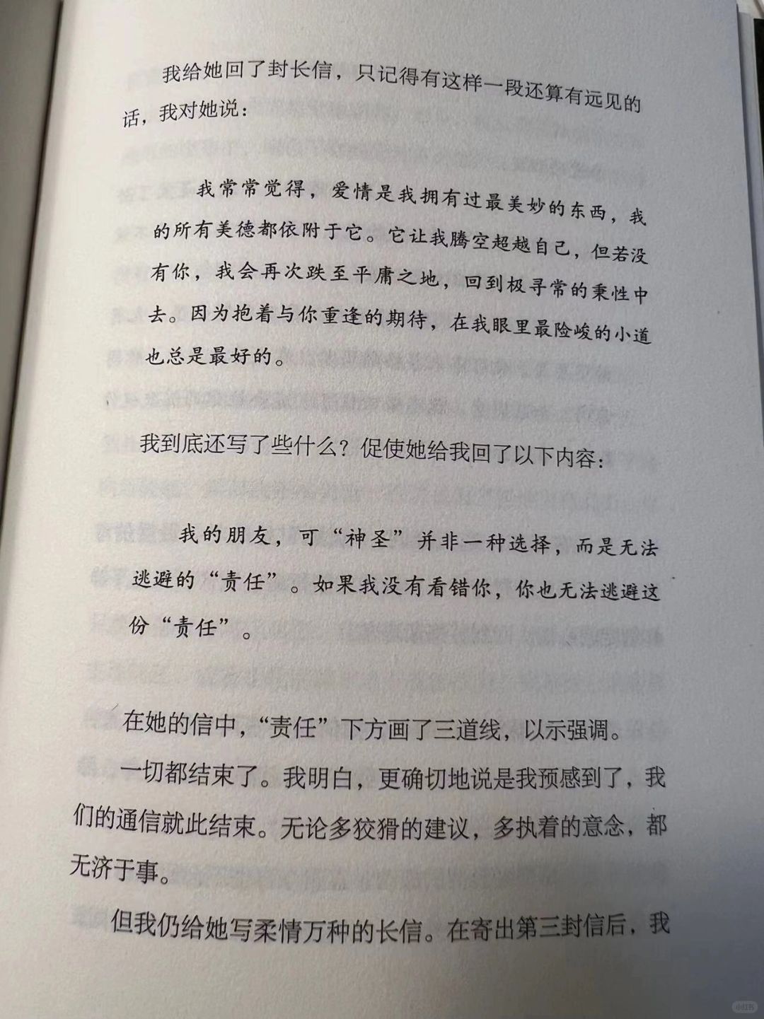 她在书信中多次有对幸福的定义:“我无法对这种充满愉悦的满足感信以为真”、“仅有幸福还不能让我们满足”,“真正的满足,我们为另一种幸福而生......”