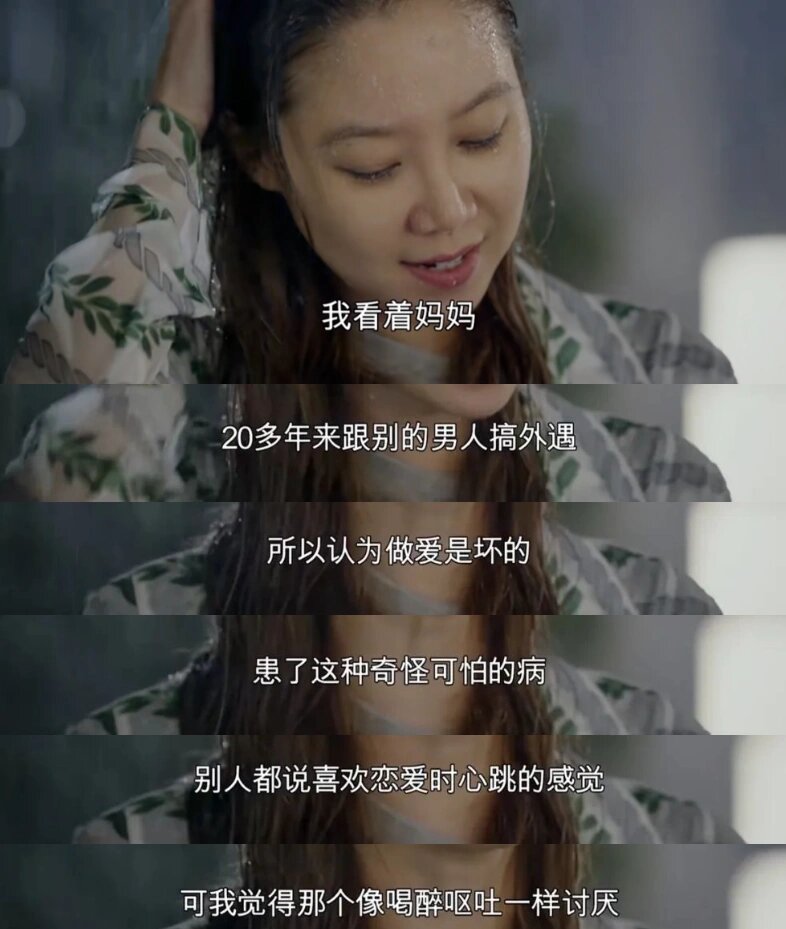 海秀刚开始不相信男主的表白,她害怕,害怕又再一次被重重摔碎在地。她说,等我有勇气告诉你我有多坏、多自私的一面,你还爱我的话,我就相信你爱我。在她暴露了自己最龌龊、最羞耻的一面之后,她胆战心惊等回复,依然是,“爱你海秀,很爱你。”