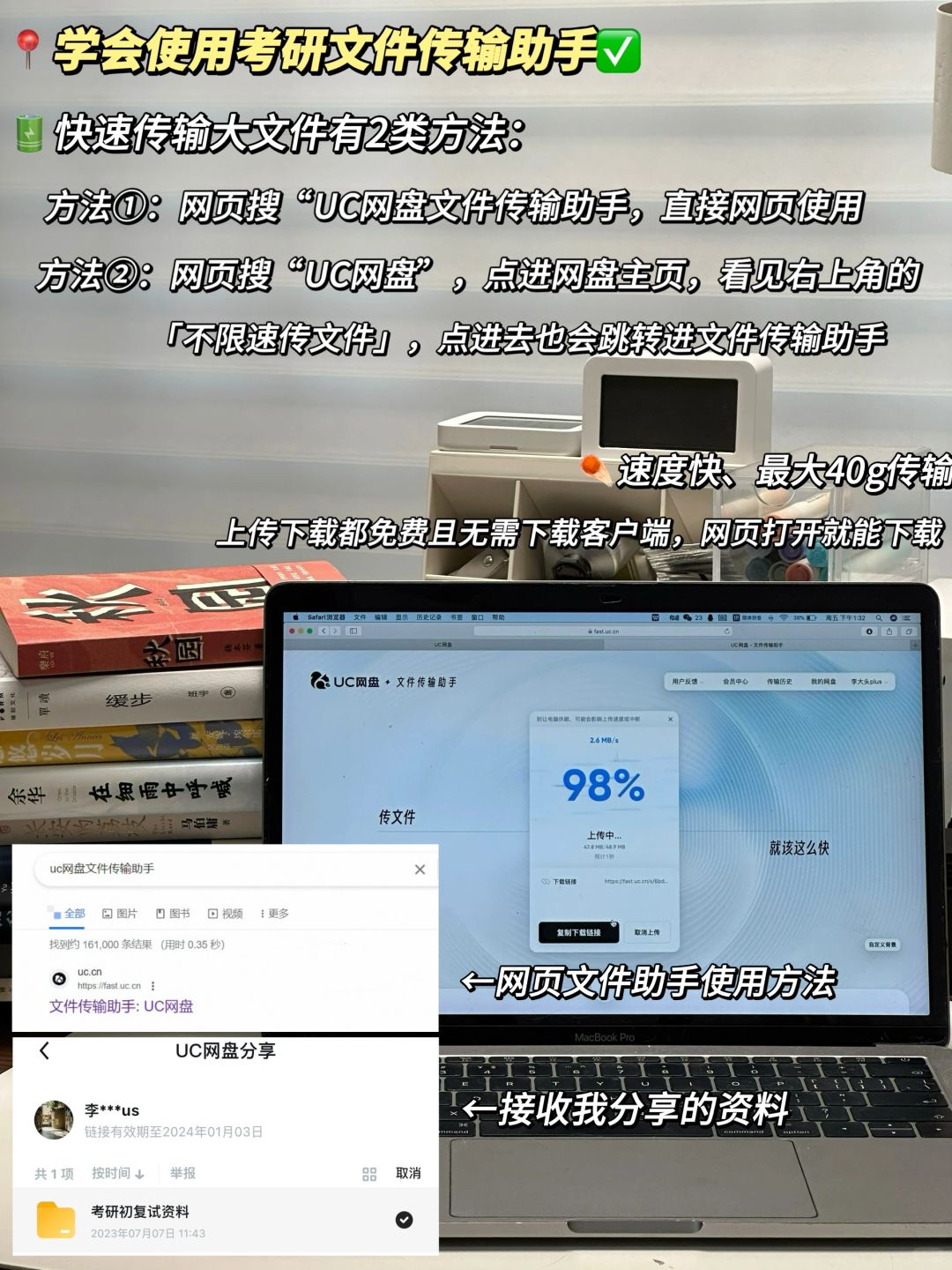 ②文件传输助手: 支持最高 40G大文件直接传输,不论是自己用还是分享资料都不用下客户端,直接网页用,上传不限速很畅快,不浪费时间