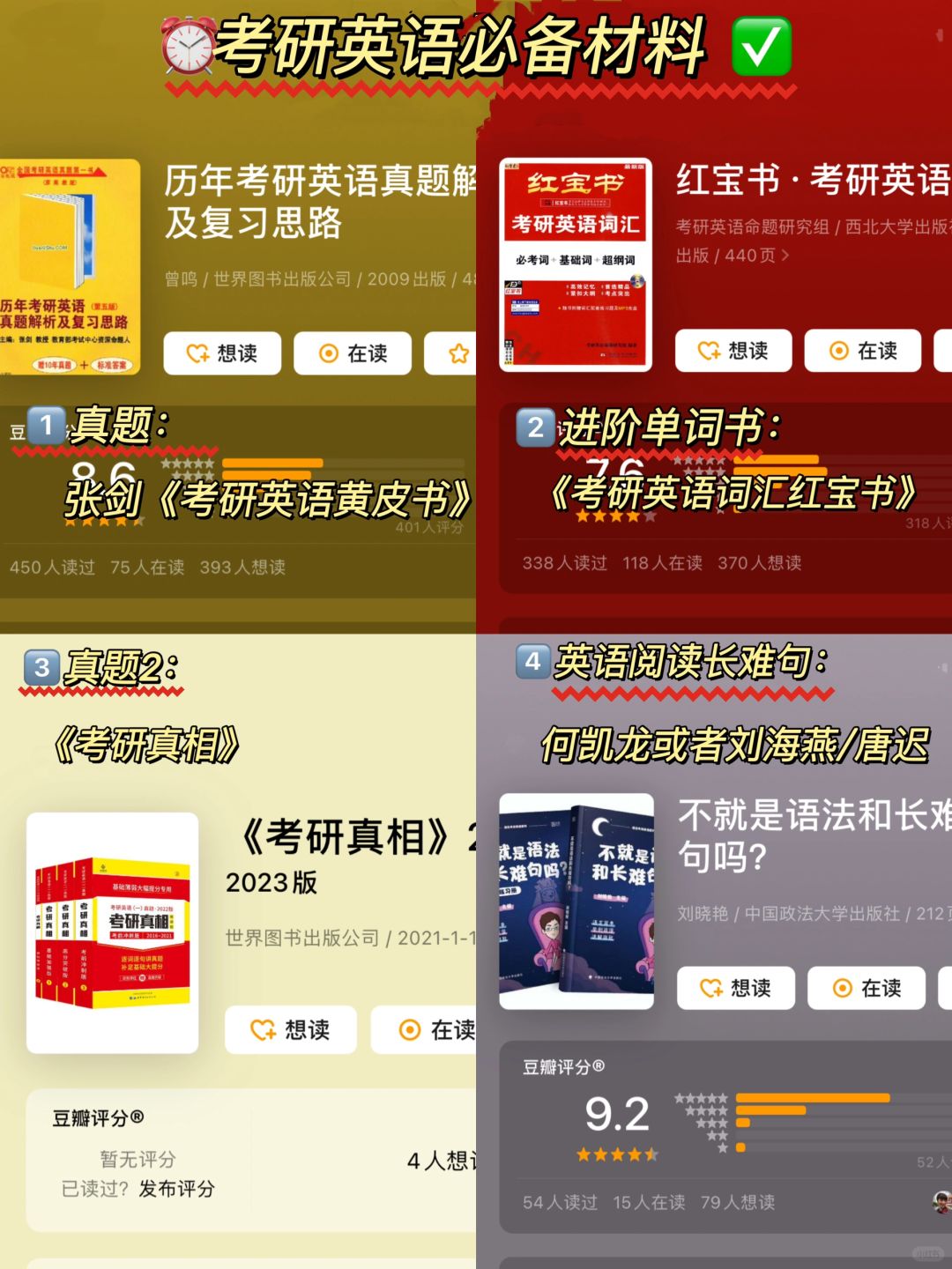 ☑️社交平台:关注每年34月份帖子,考研结束后很多人分享经验