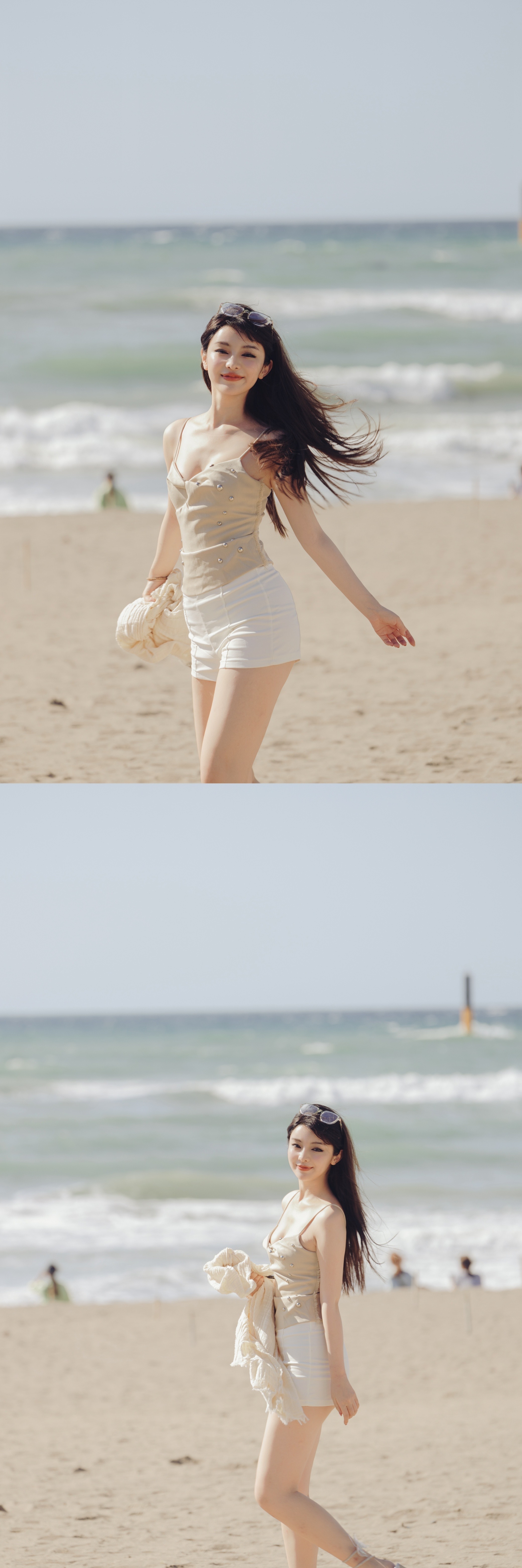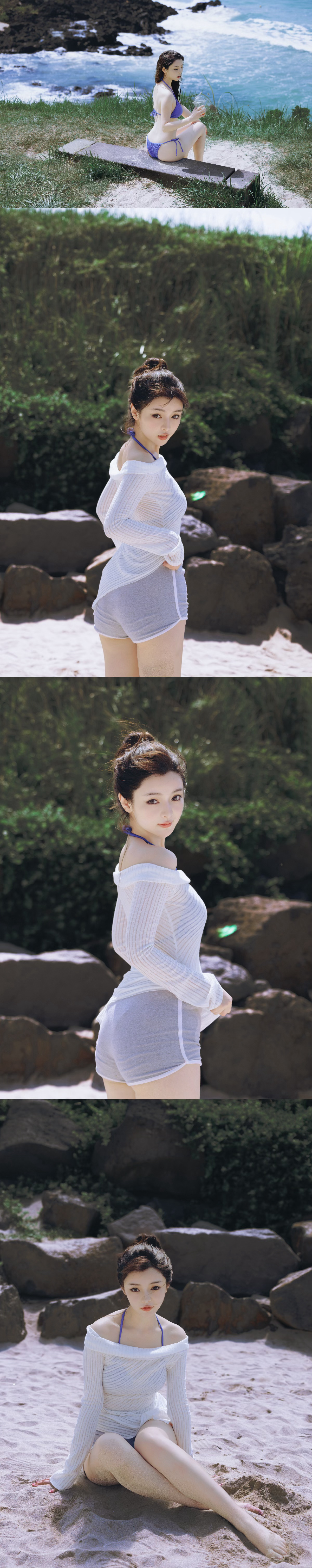 刘亦菲十七八岁时在海边游玩留下的一组照片,肚子上好多肉肉啊!