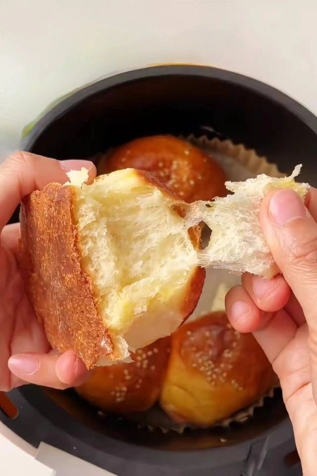 闲来无事,用空气炸锅做了这个奶香小面包吃,胖乎乎的好可爱!外皮烤的焦黄酥脆,内里蓬松暄软,超浓郁奶香味扑鼻而来,平时当早餐,下太香啦!