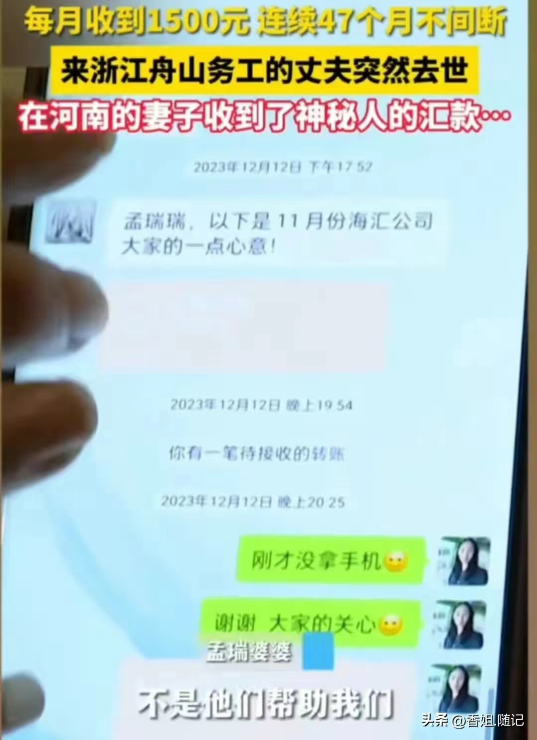 孟端是河南农村人,她的丈夫在浙江舟山船上做渔工,后来不幸去世。婆婆年迈多病,下面还有三个孩子,这可如何生活呢?但是没想到在丈夫去世的第2个月,他就有一个陌生人加她,说是丈夫的生前好友,代表大家的心意来慰问他,而且未来会持续做一些援助,协助他照顾老人和小孩。