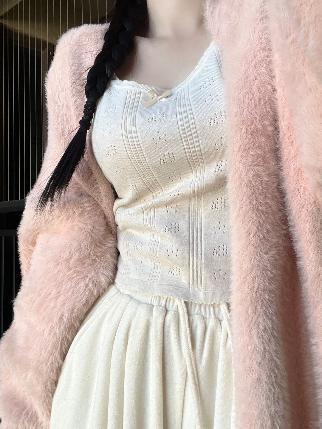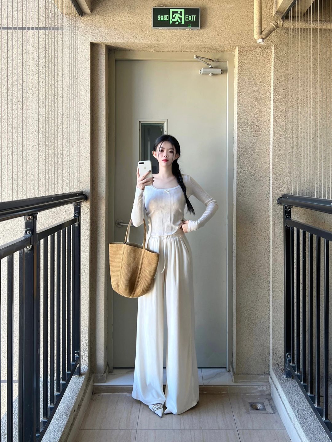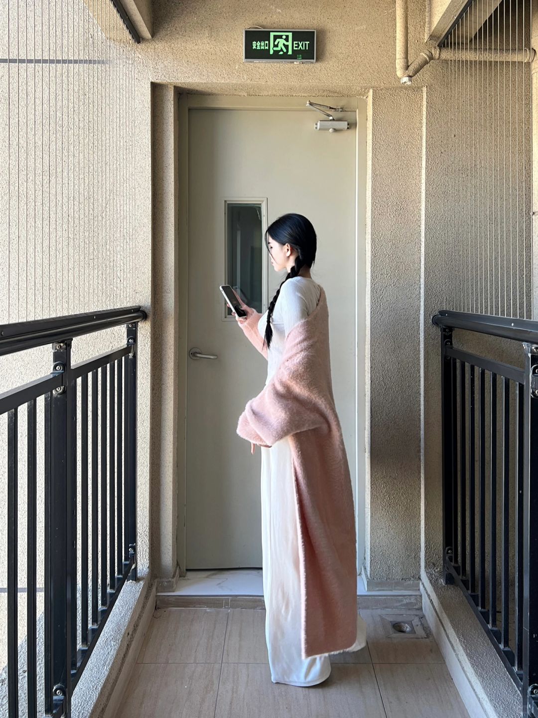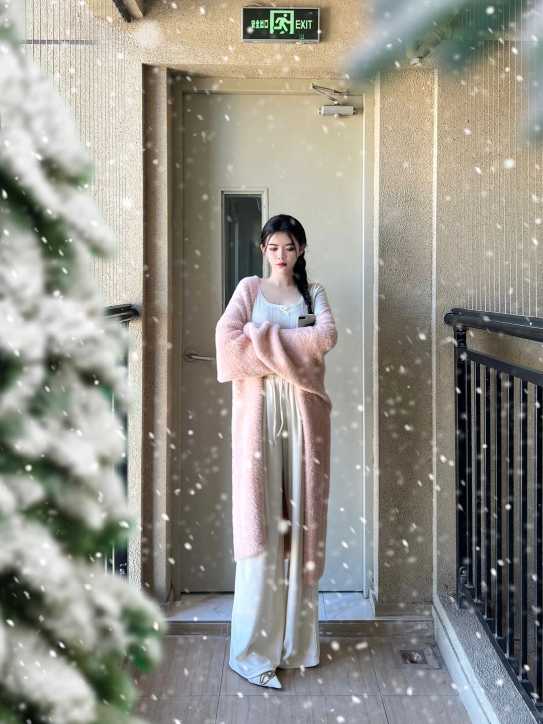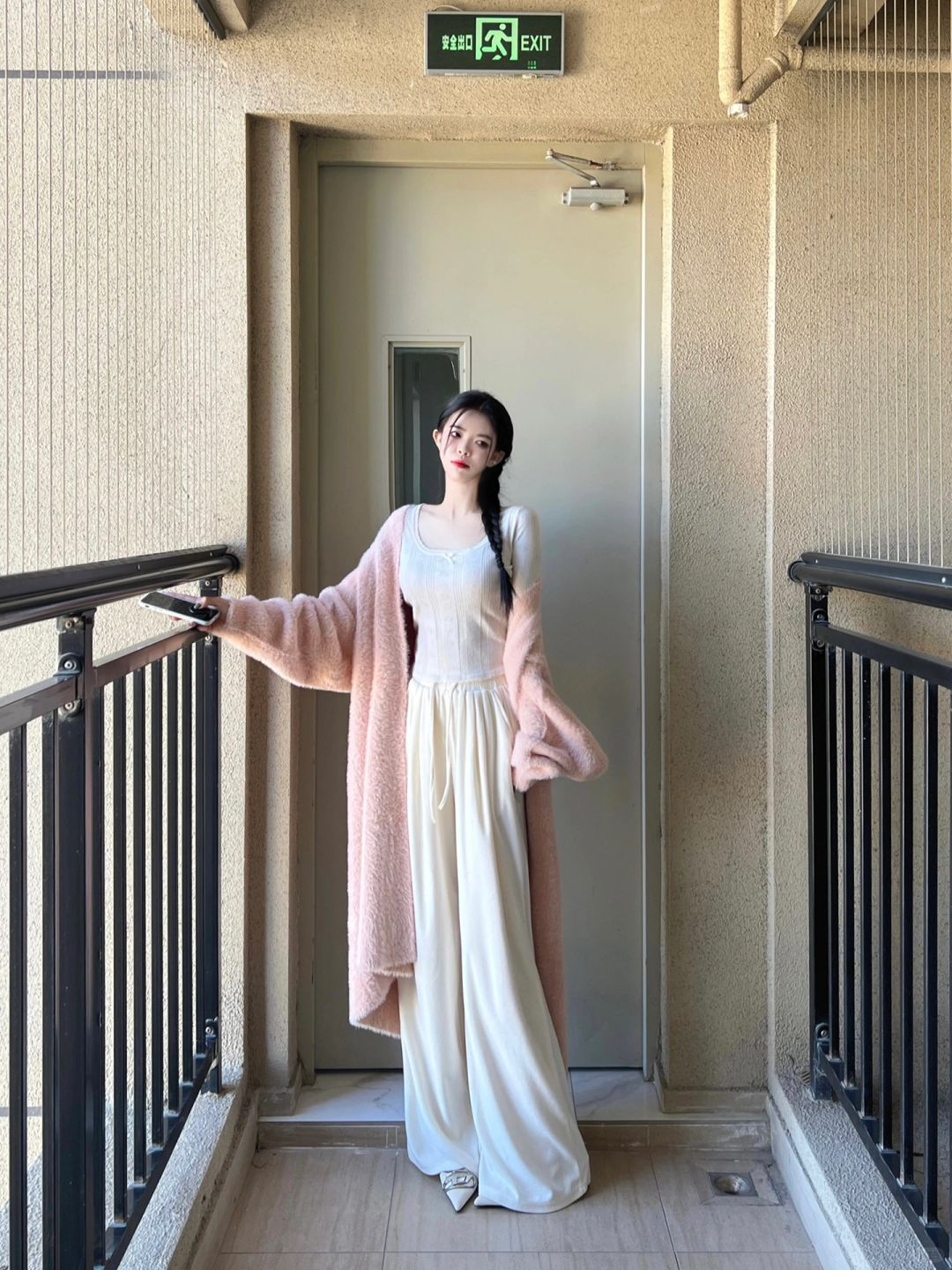 好适合约会的衣服! 温温柔柔的粉色毛衣外套跟白色阔腿裤! 还有我的小麻花针织上衣!