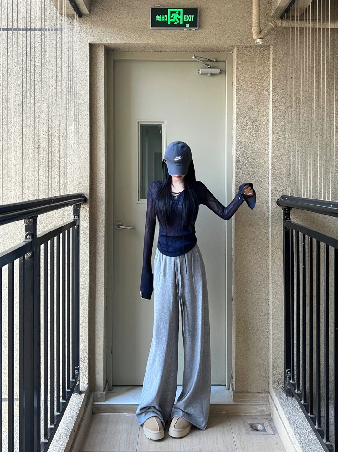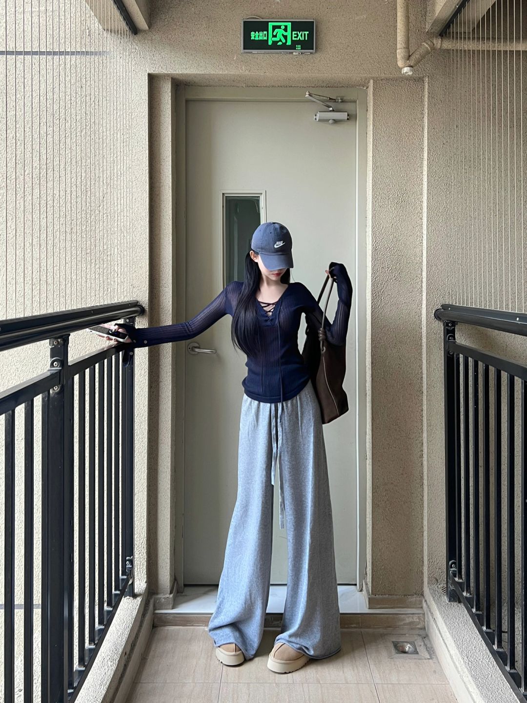蓝色小心机上衣跟抽绳针织裤!