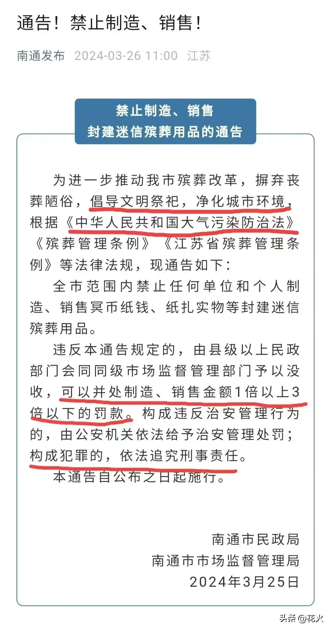 #南通殡葬店家:如果存货报废受不了#江苏南通这种禁止制作和售卖殡葬用品的通告,出的非常突然。很快就要到了清明祭祖的时候了,南通市经营殡葬业务的商家,早早就进好了货,现在就傻眼了。之前也没有沟通,也没有预告,直接就发通告,那么现在堆在仓库和店里的存货怎么办?