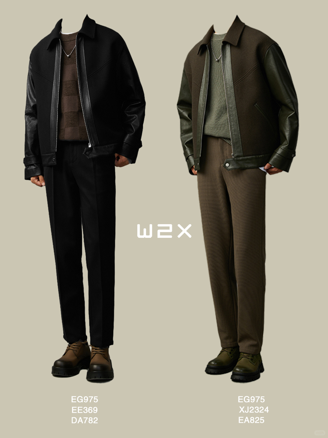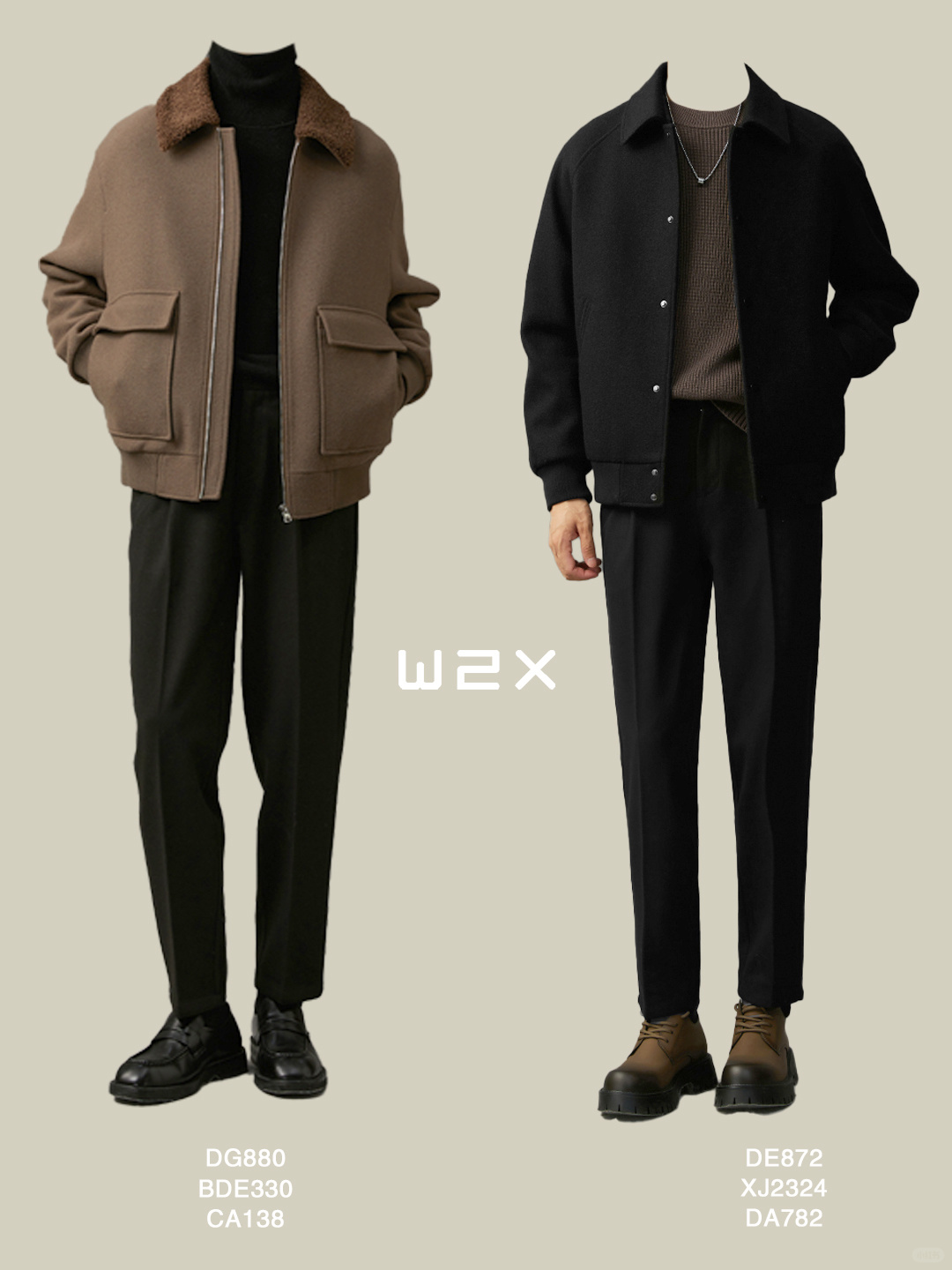 LOOK3:羊羔毛领羊毛夹克+黑色高领针织+磨毛休闲西裤