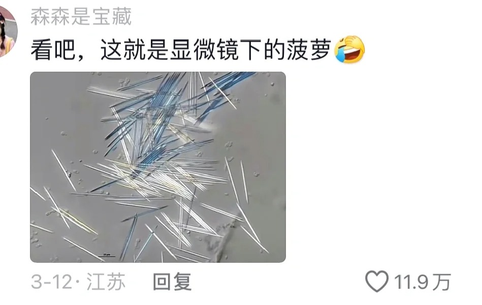 草酸钙针晶,好多植物里都有。不要大惊小怪