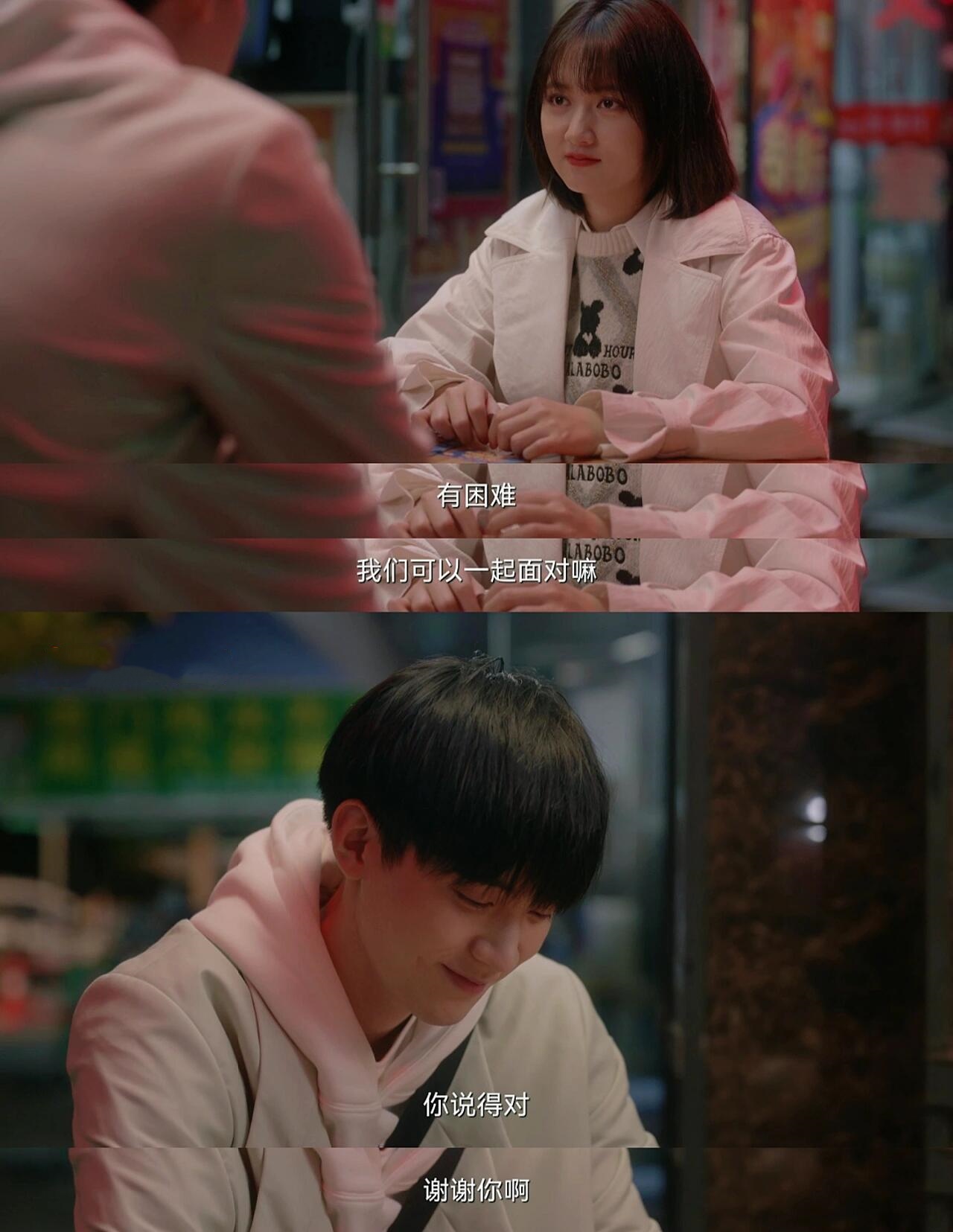 两个人互相安慰,互相鼓励对方,两个人越靠越近,就像彼此两颗越靠越近的脑袋