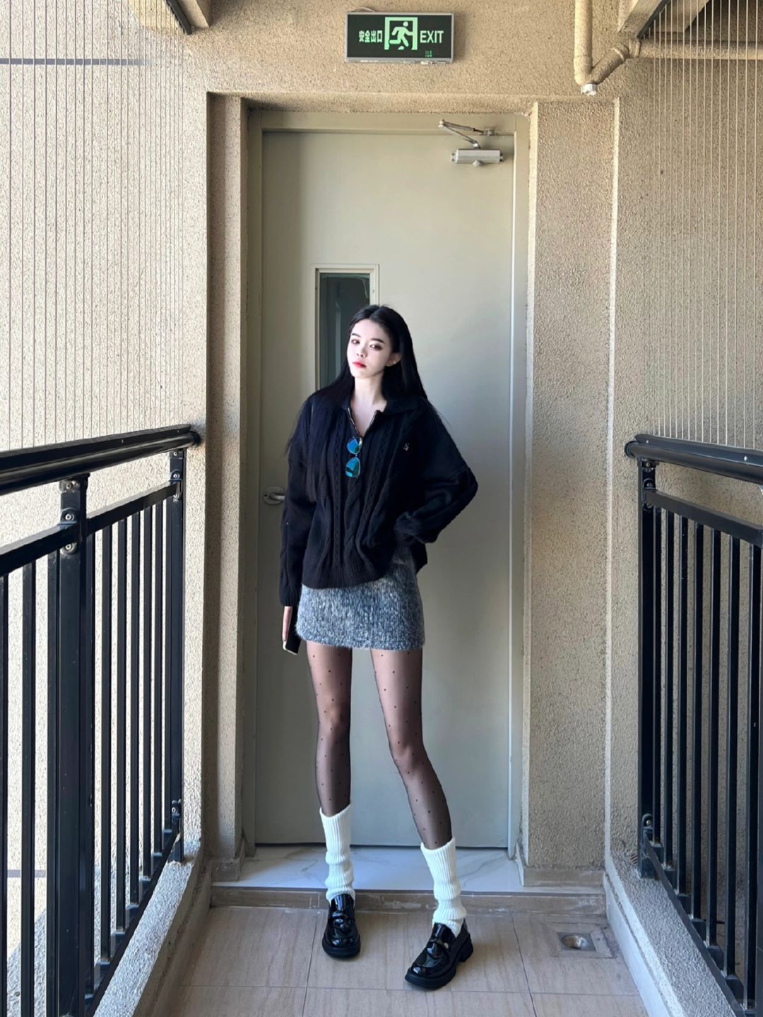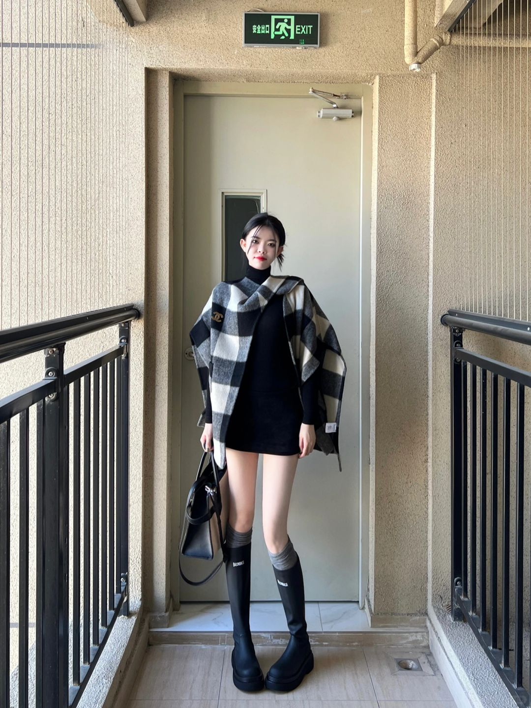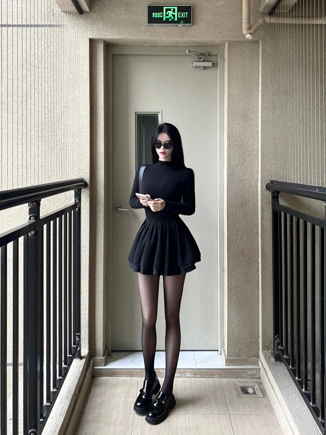 母其弥雅秋日穿搭美图:黑色优雅身材真好