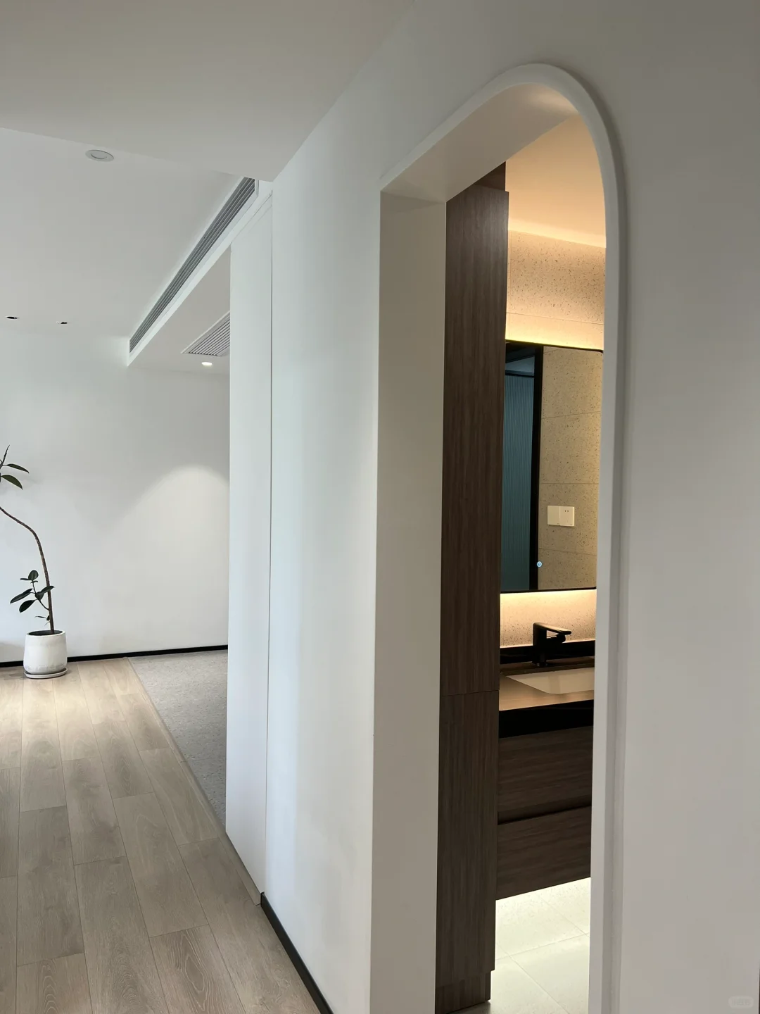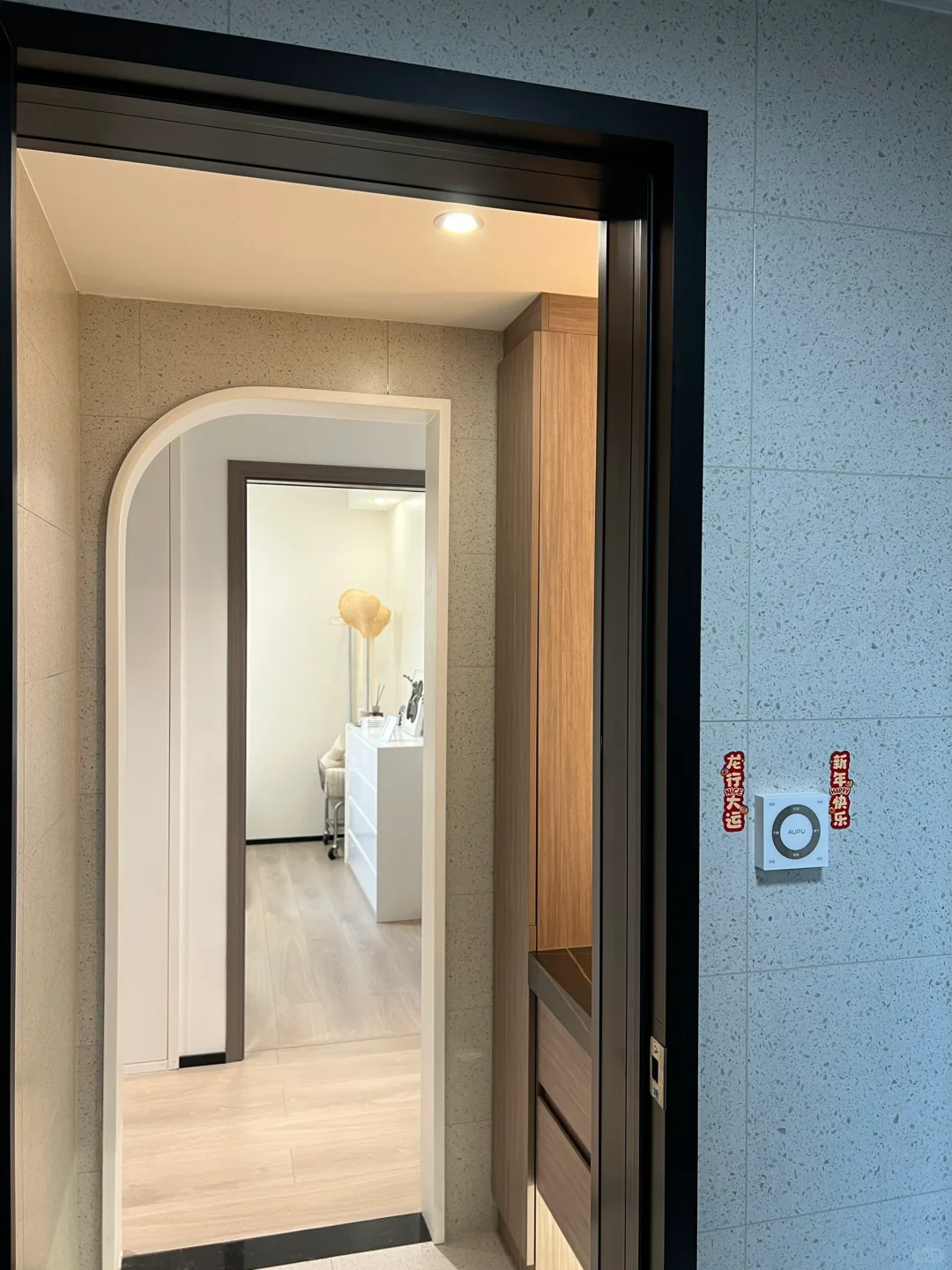 干区门洞上嵌入的半弧形门框,再刷上一层奶呼呼的白漆