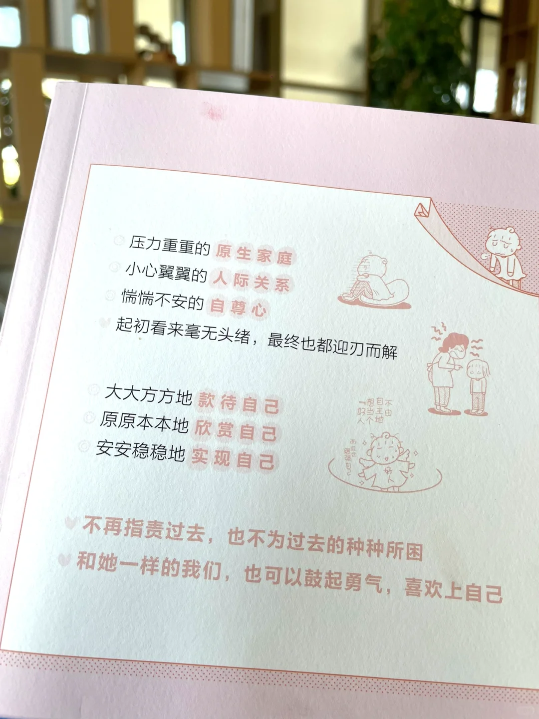 如果你的生活被内耗、敏感、焦虑、自卑、压抑裹挟,建议认真读完这本书,这是一本漫画结合互动小手册的治愈小书,别担心,读起来轻松减压不费脑,但真的能让我们从内心深处获得改变