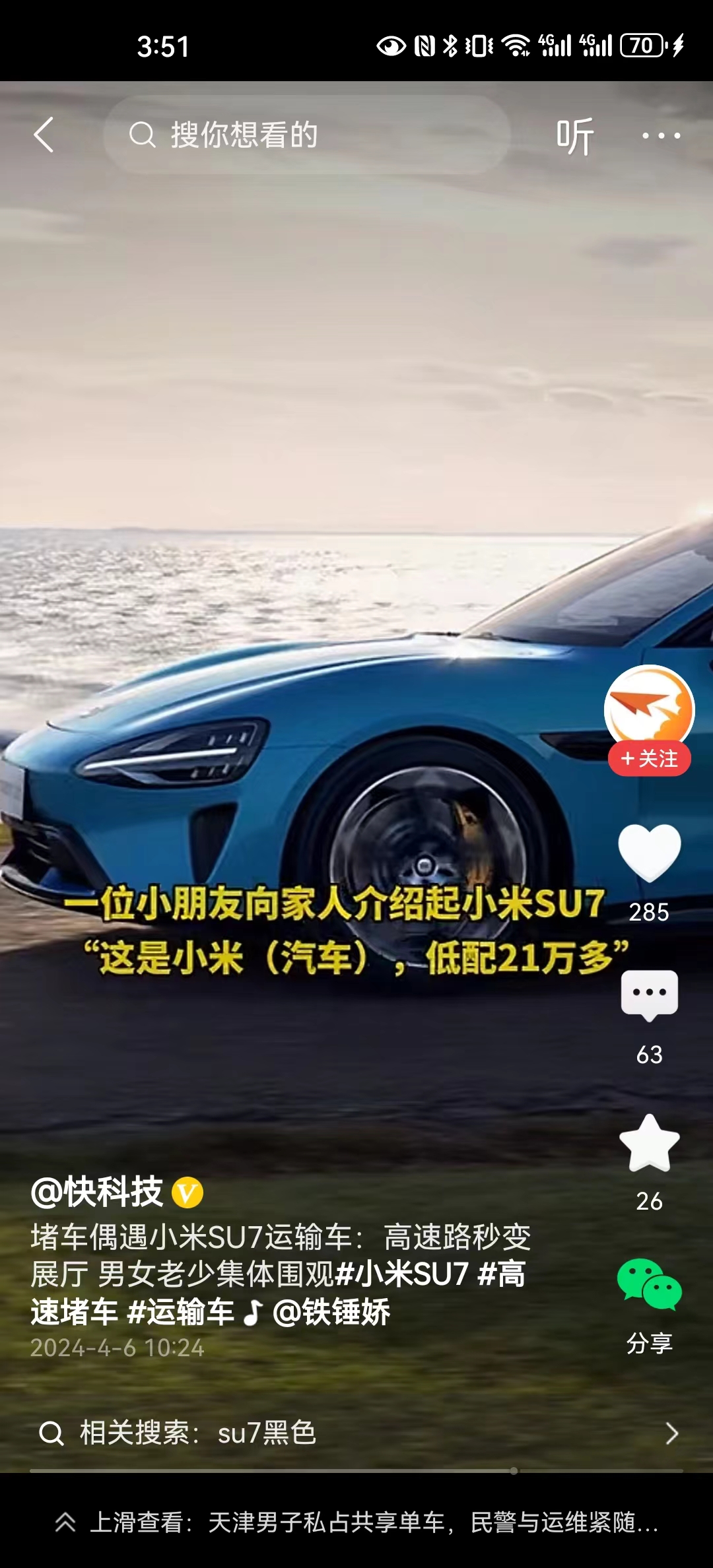 #高速堵车现场秒变小米SU7车展#先不评价小米汽车su7,到底好不好?但是最少佩服雷军在市场营销方面下了大功夫,真正做到了小米汽车上市,人尽皆知。最少民众被勾起了好奇心,都想看一看这款车到底怎么样?男女老少,个个都知道小米出汽车了,仅仅这一番营销操作,就要给雷军大大的点一个赞。
