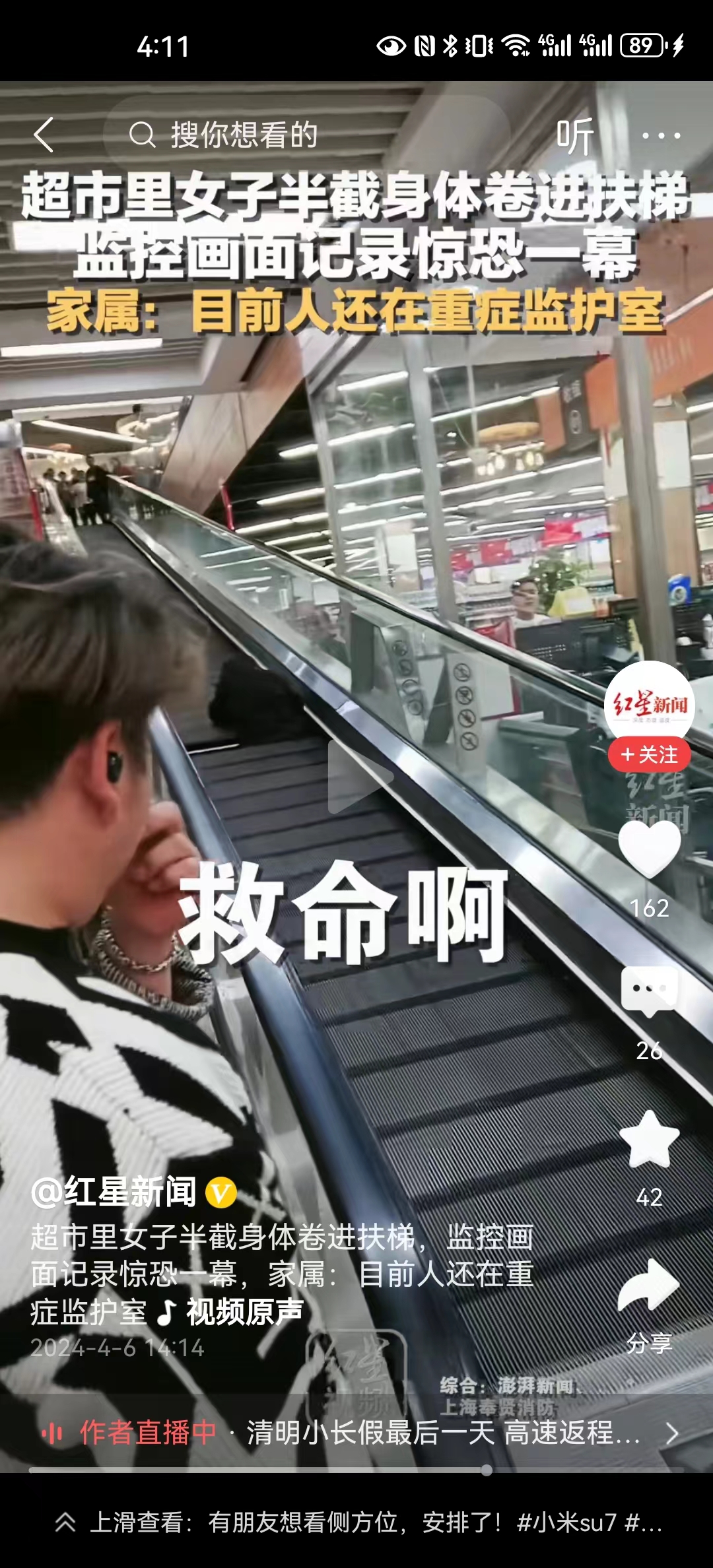 #女子半截身体被卷进扶梯#大家走路一定要看路啊!如果这名女子当时不是看着手机,那么肯定会能看到自动扶梯,那缺失的一块。可能就不会出现这样的悲剧了!当然主要责任,还是在上海的这个超市啊。关键这名上海女子仍然在重症监护室,没有脱离危险呢。