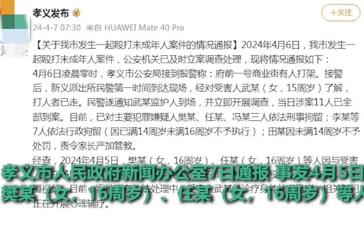 从公布的通报来看,打架的原因是个人矛盾,但是打人发生在凌晨,其中还有一个未满14周岁的学生,3人已经满16周岁,被依法刑事拘留,等待他们的将是刑事处罚,以后是别想再上学了。